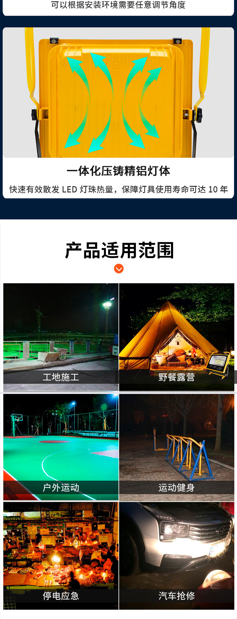 충전식 홍수 조명 LED 옥외 조명 캠핑 마구간 야시장 휴대용 플래시 경고 사이트 주도 비상 조명