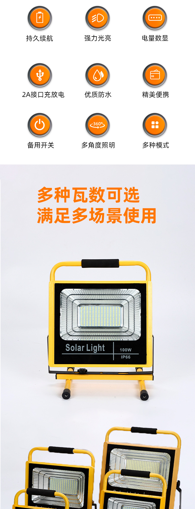 • 태양광 휴대용 램프 100W (태양 전지 패널 + 직접 충전 + 빨강 및 파랑 플래시)