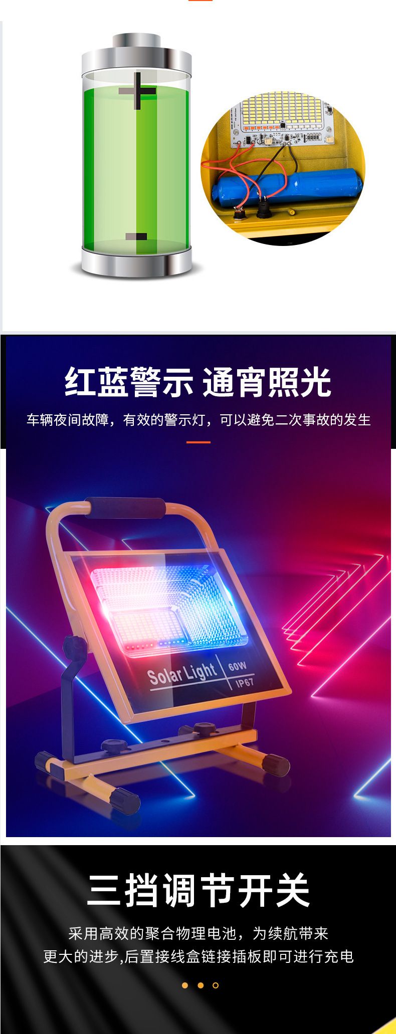 • 휴대용 램프 60W (직접 충전 + 빨강 및 파랑 플래시)