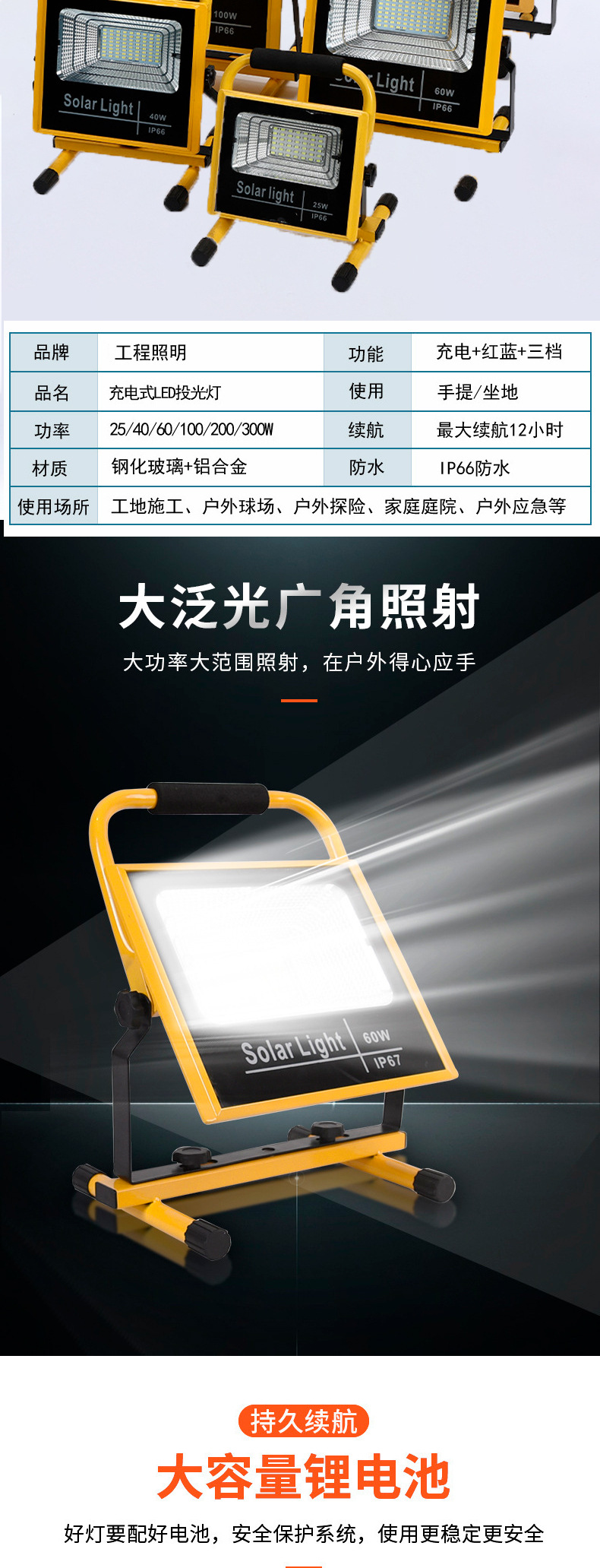 • 휴대용 램프 200W (직접 충전 + 빨강 및 파랑 플래시)