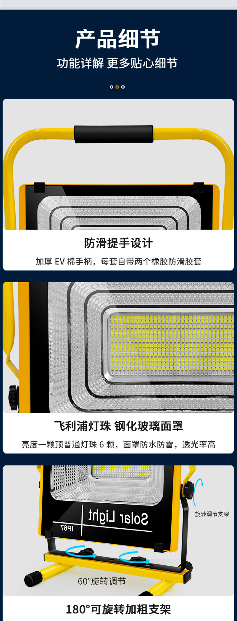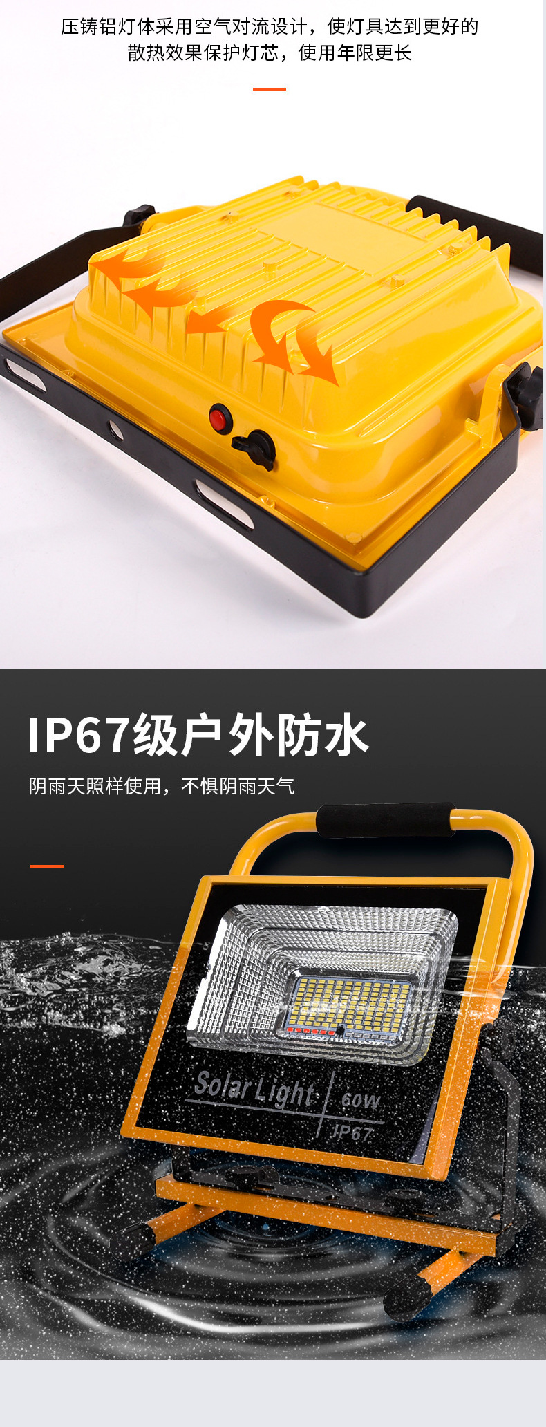 • 태양광 휴대 램프 60W (태양 전지 패널 + 직접 충전 + 빨강 및 파랑 플래시)
