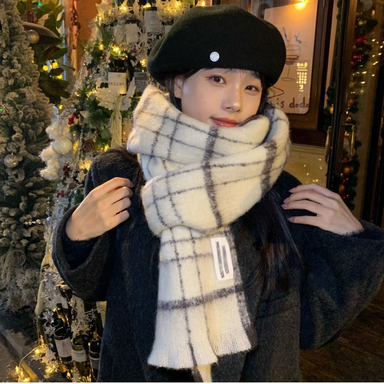 스카프 여성용 겨울 2023 새로운 하이 엔드 올 매치 한국식 술 양면 두꺼운 따뜻한 핫 스타일 쌀 화이트 스카프스토어 가기