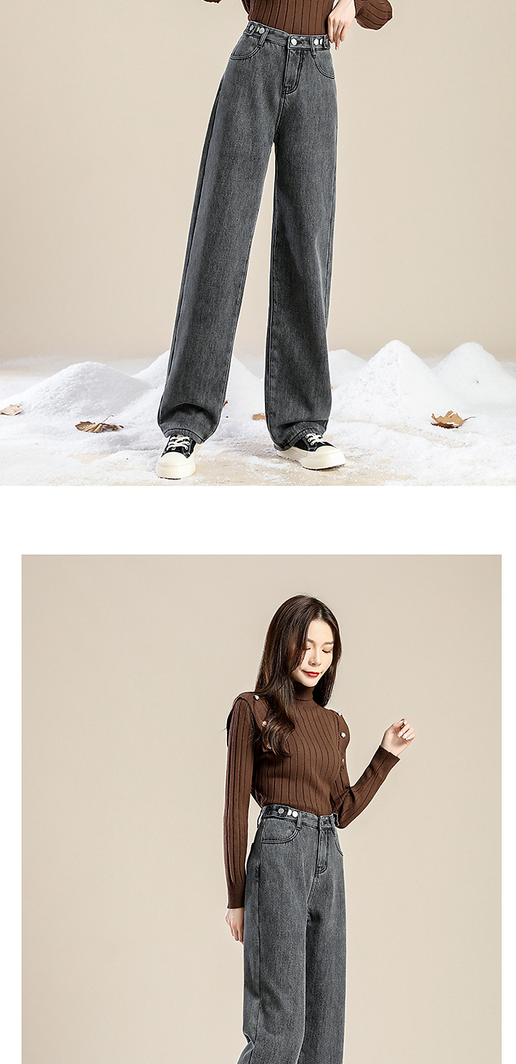 여아용 벨벳 두꺼운 청바지 가을 겨울 의류 2025 신입생 중학생 및 고등학생 스트레이트 루즈 와이드 레그스토어 가기