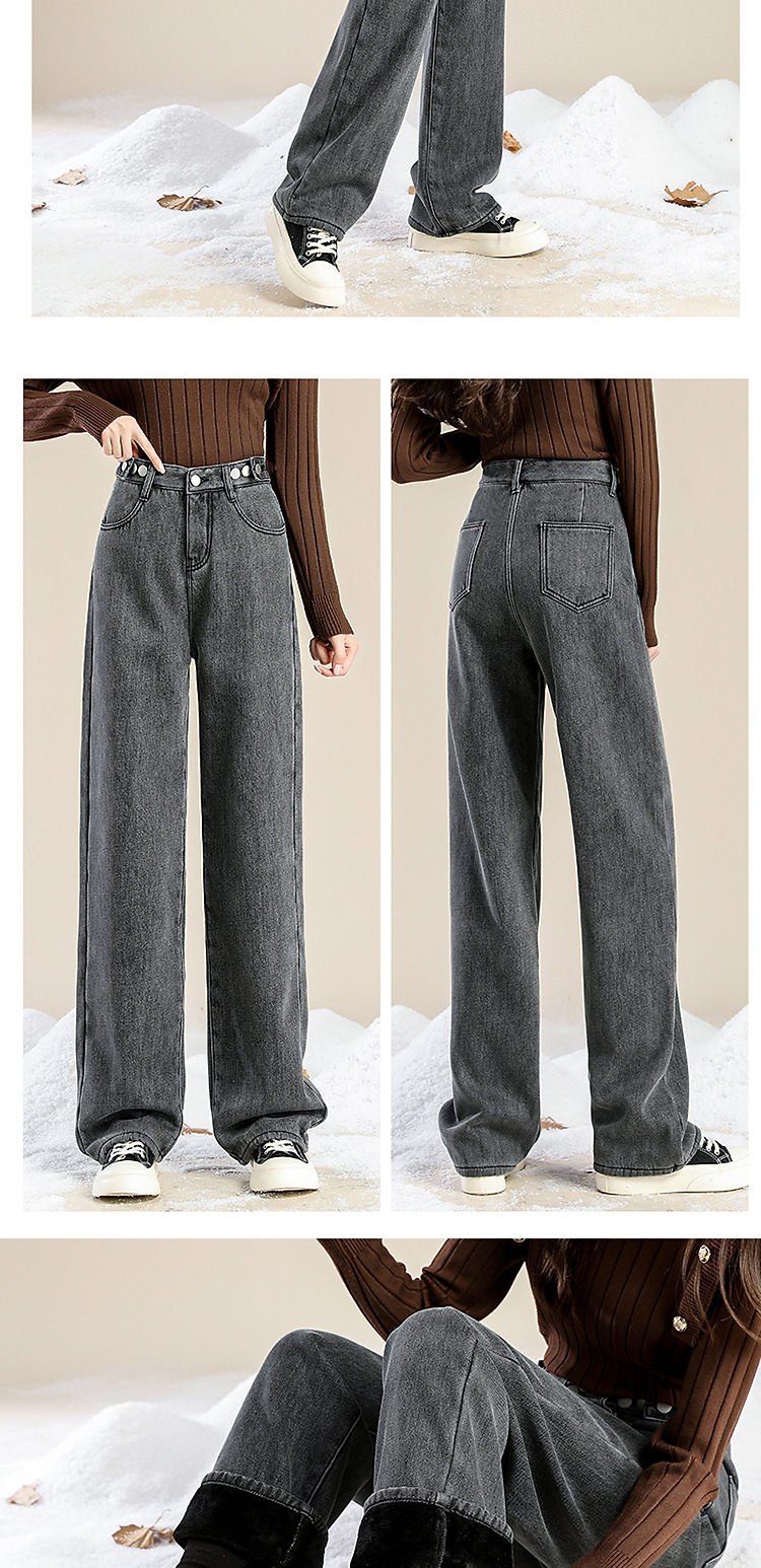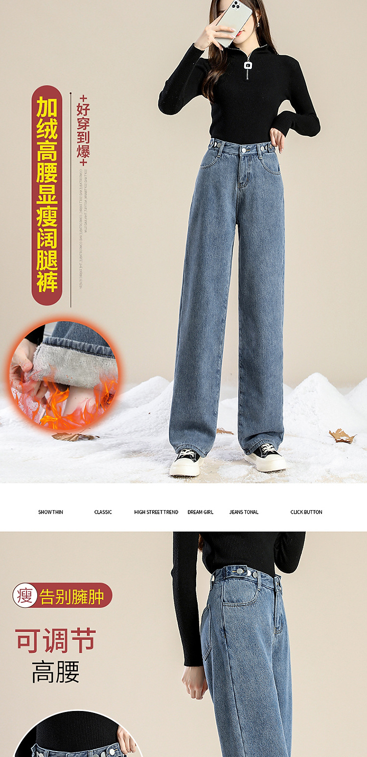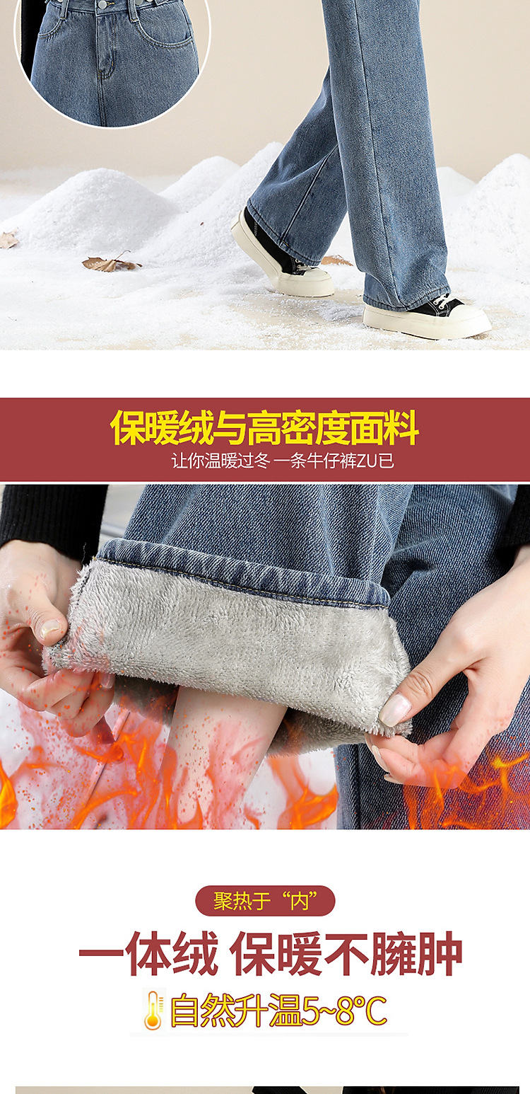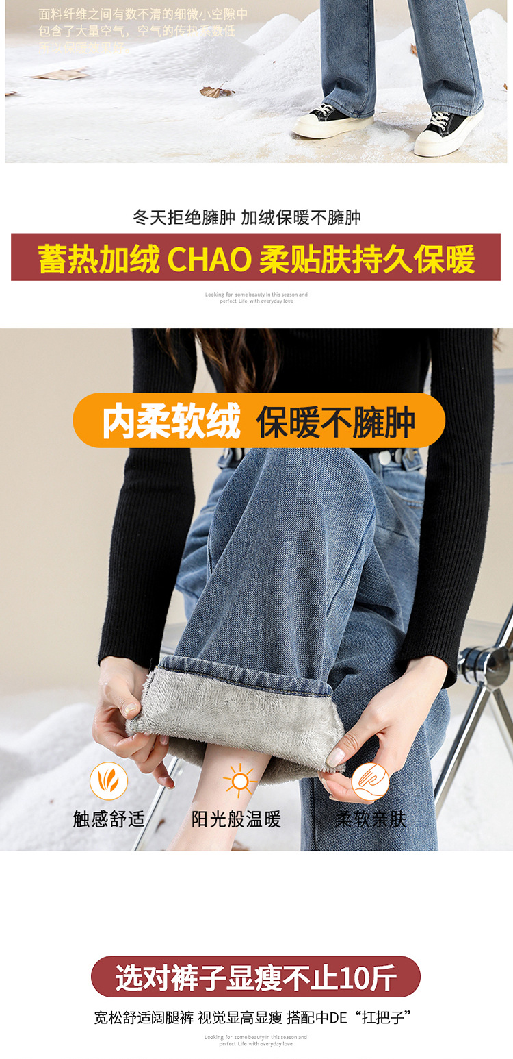 加绒加厚牛仔裤子少女生秋冬装2025新款初中高中学生直筒宽松阔腿undefined