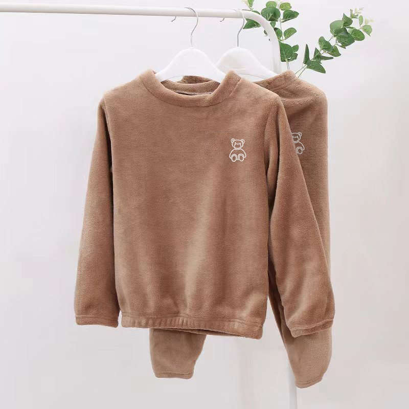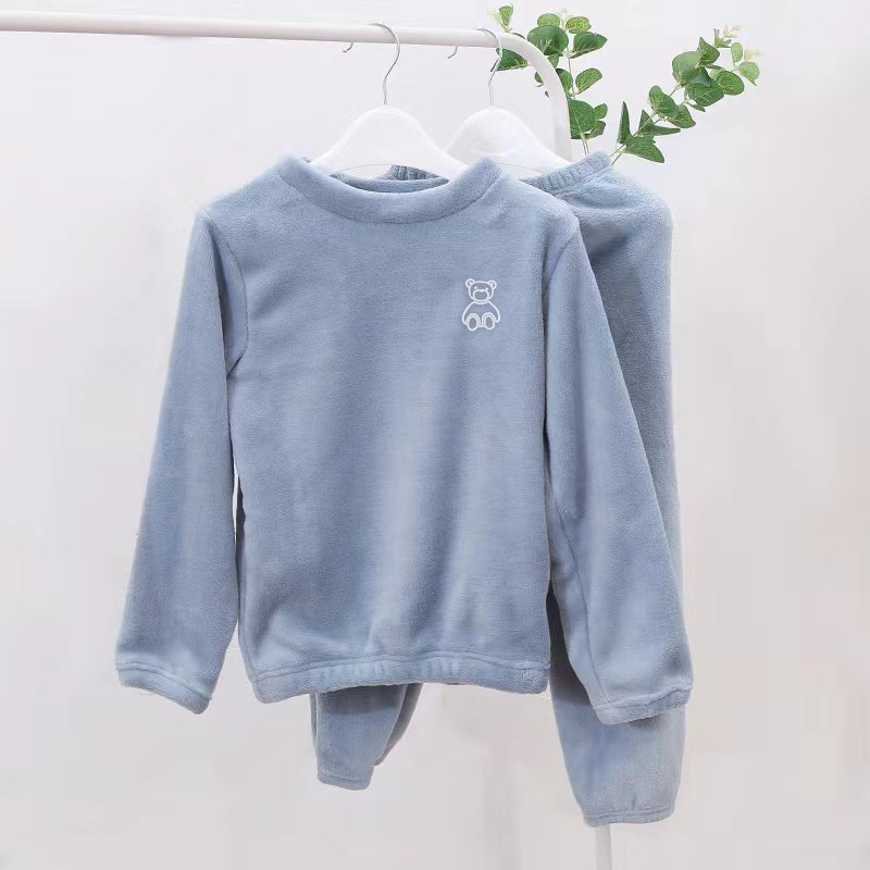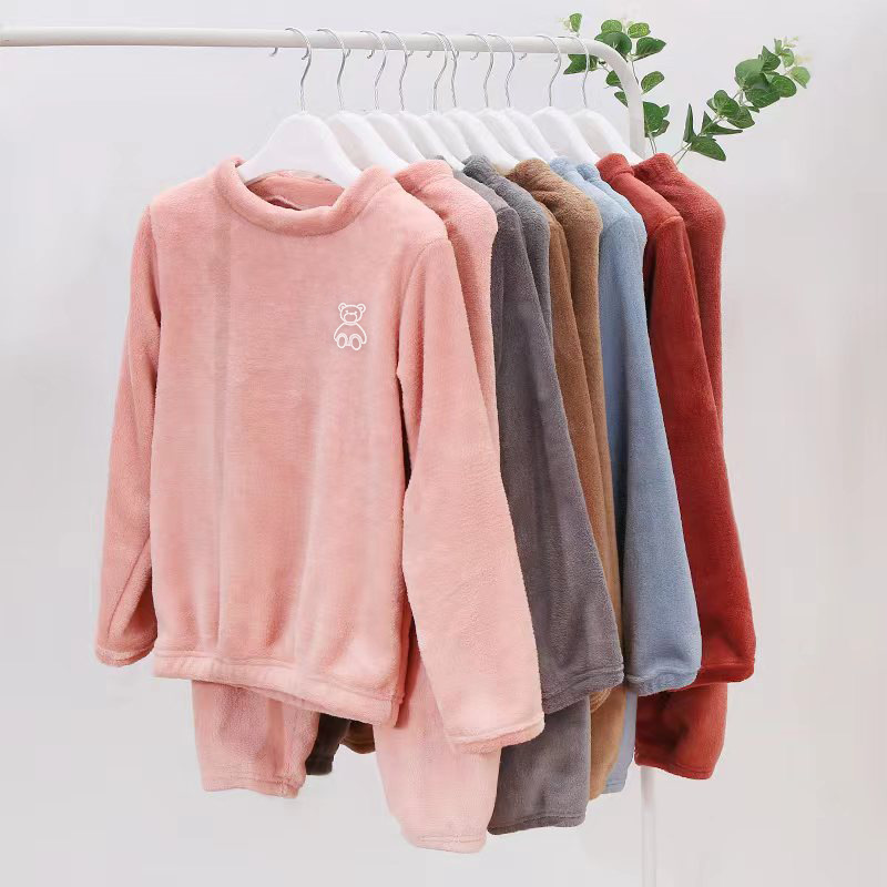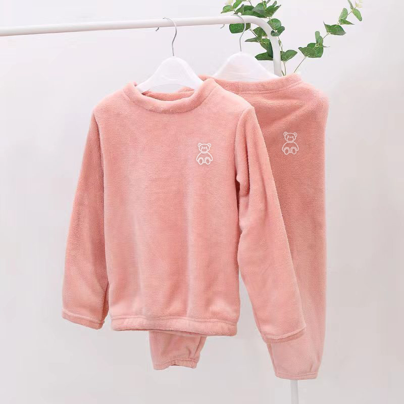 어린이 따뜻한 세트 가을과 겨울 산호 양털 새로운 여자 잠옷 곰 자수 방한 양면 양털 가정 옷스토어 가기