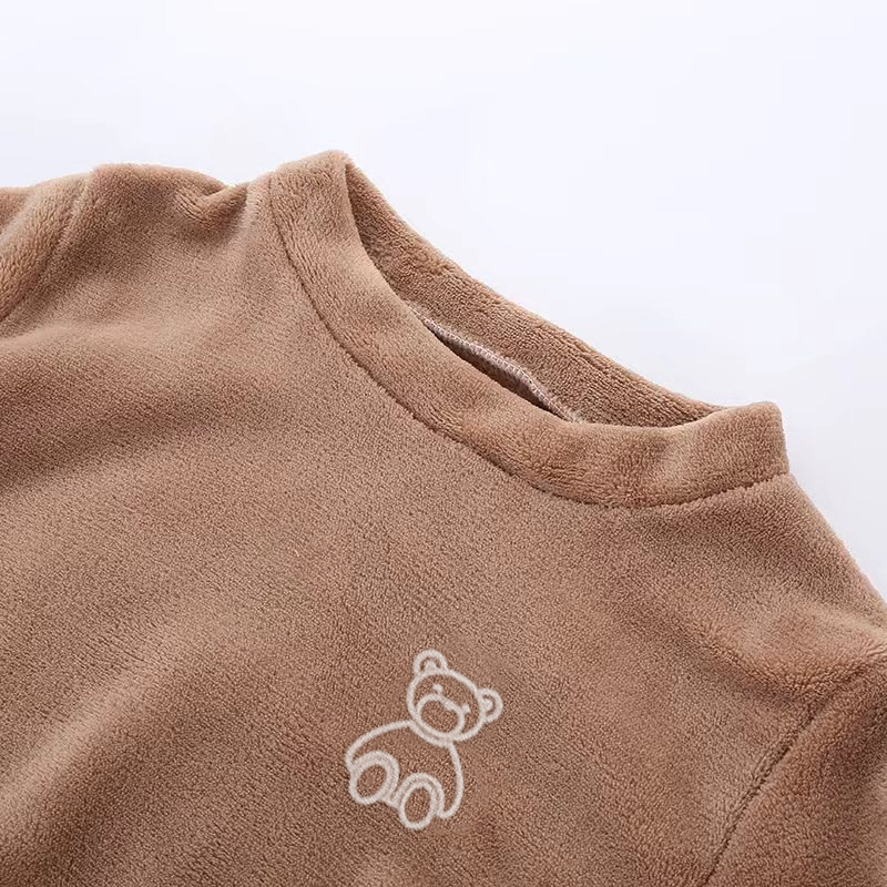 어린이 따뜻한 세트 가을과 겨울 산호 양털 새로운 여자 잠옷 곰 자수 방한 양면 양털 가정 옷