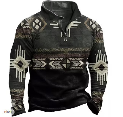 2023跨境欧美半拉链卫衣民族风3d印花半拉链卫衣男卫衣