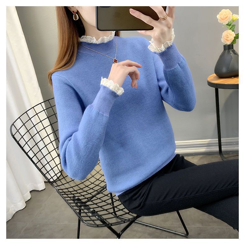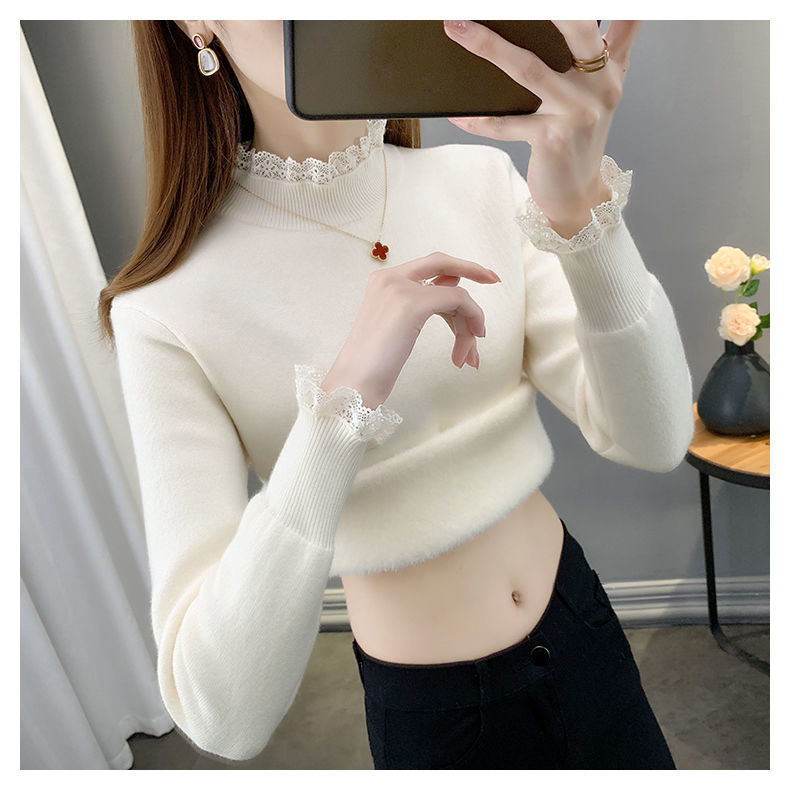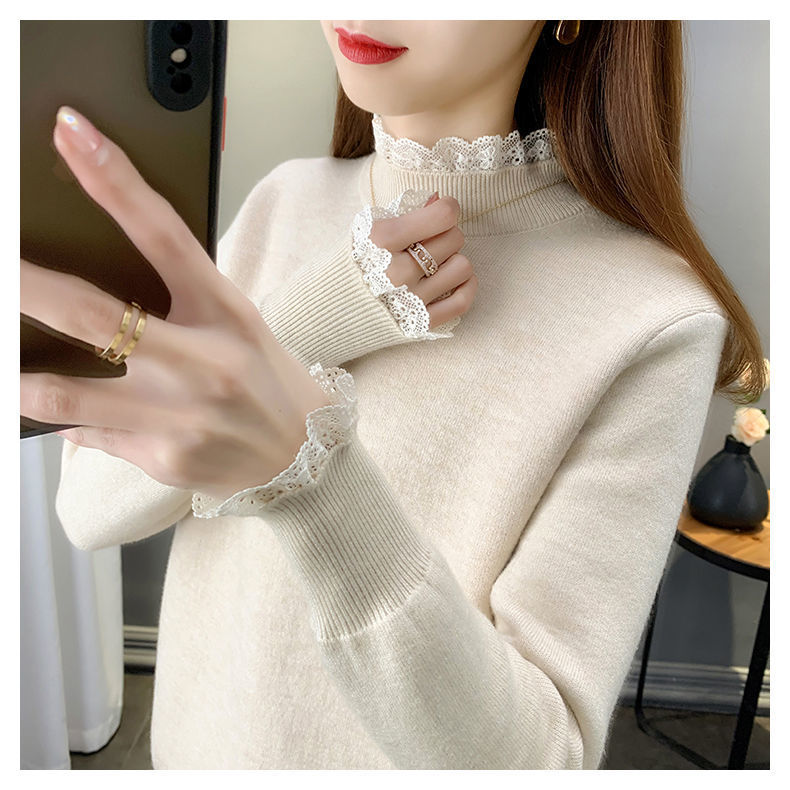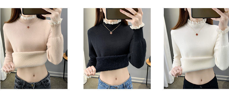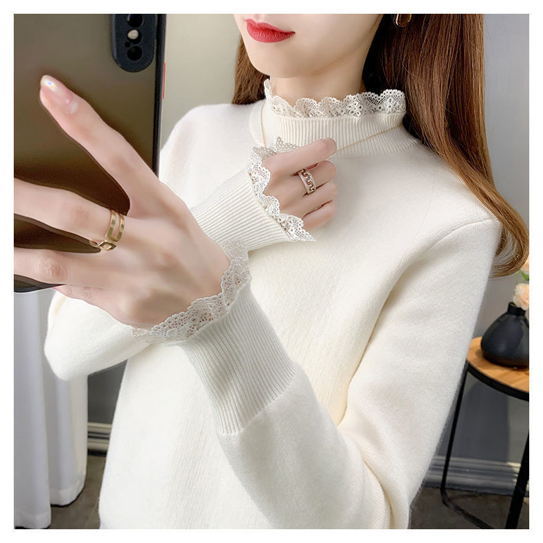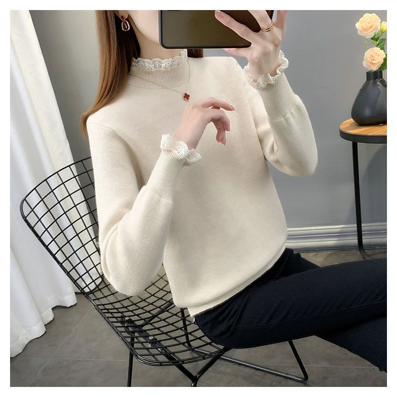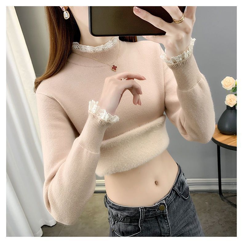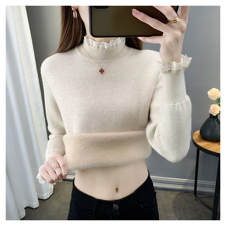 [양털] 캐시미어 여성용 셔츠 하프 터틀넥 플러스 벨벳 두꺼운 스웨터 따뜻한 올인원 벨벳 이너 울 베이스 레이어 셔츠