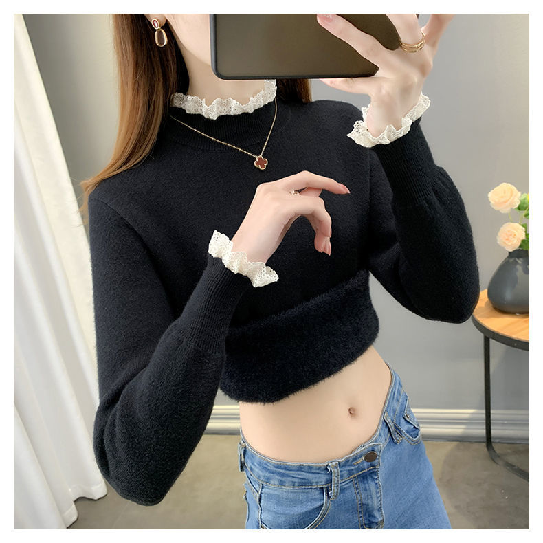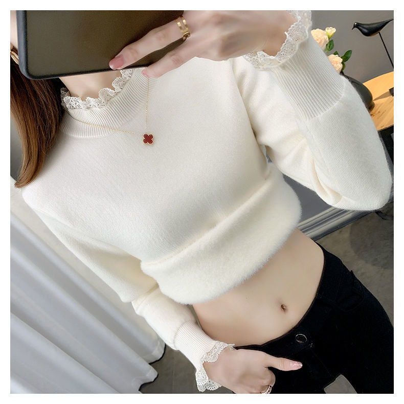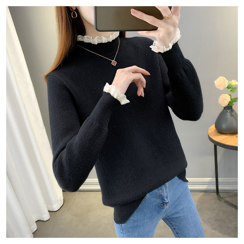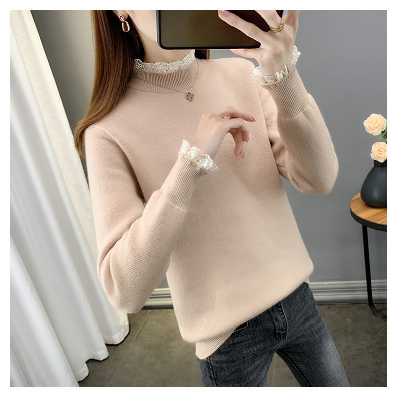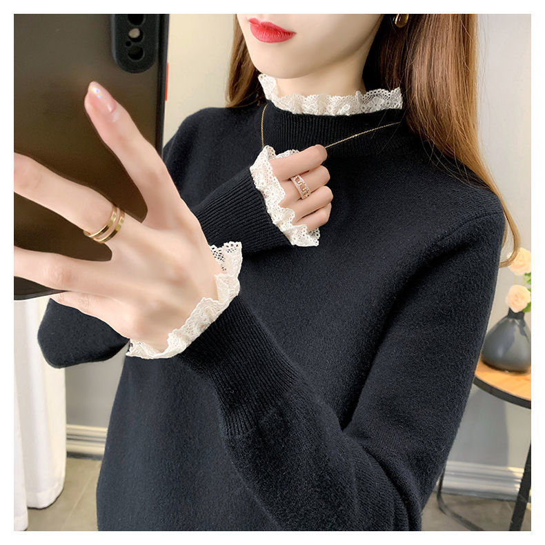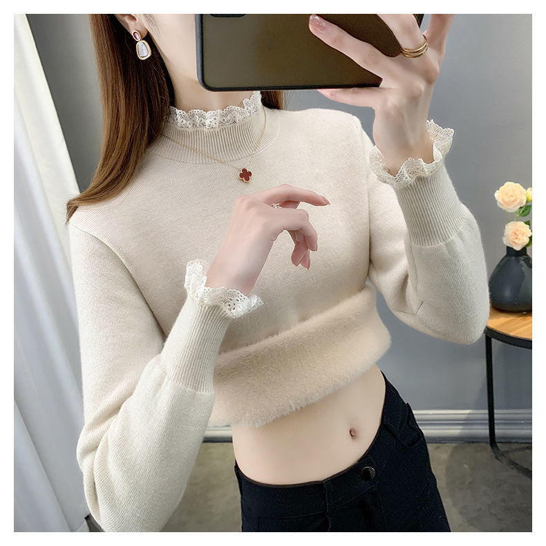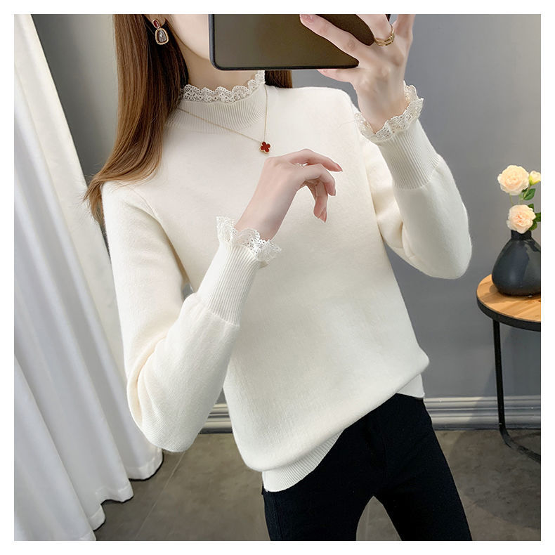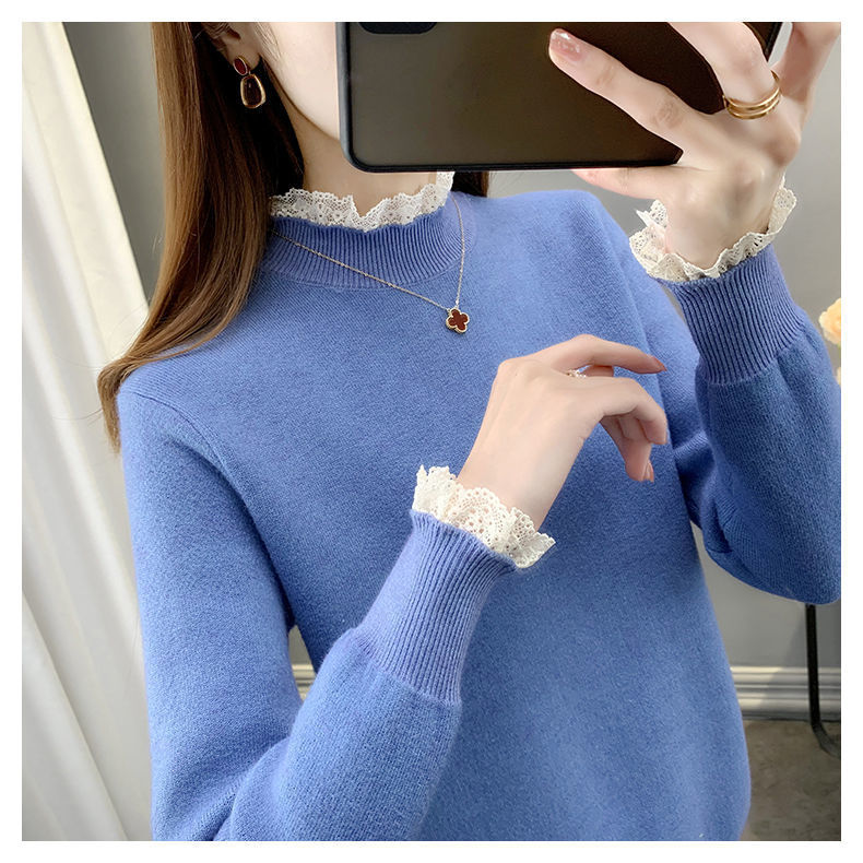 [양털] 캐시미어 여성용 셔츠 하프 터틀넥 플러스 벨벳 두꺼운 스웨터 따뜻한 올인원 벨벳 이너 울 베이스 레이어 셔츠