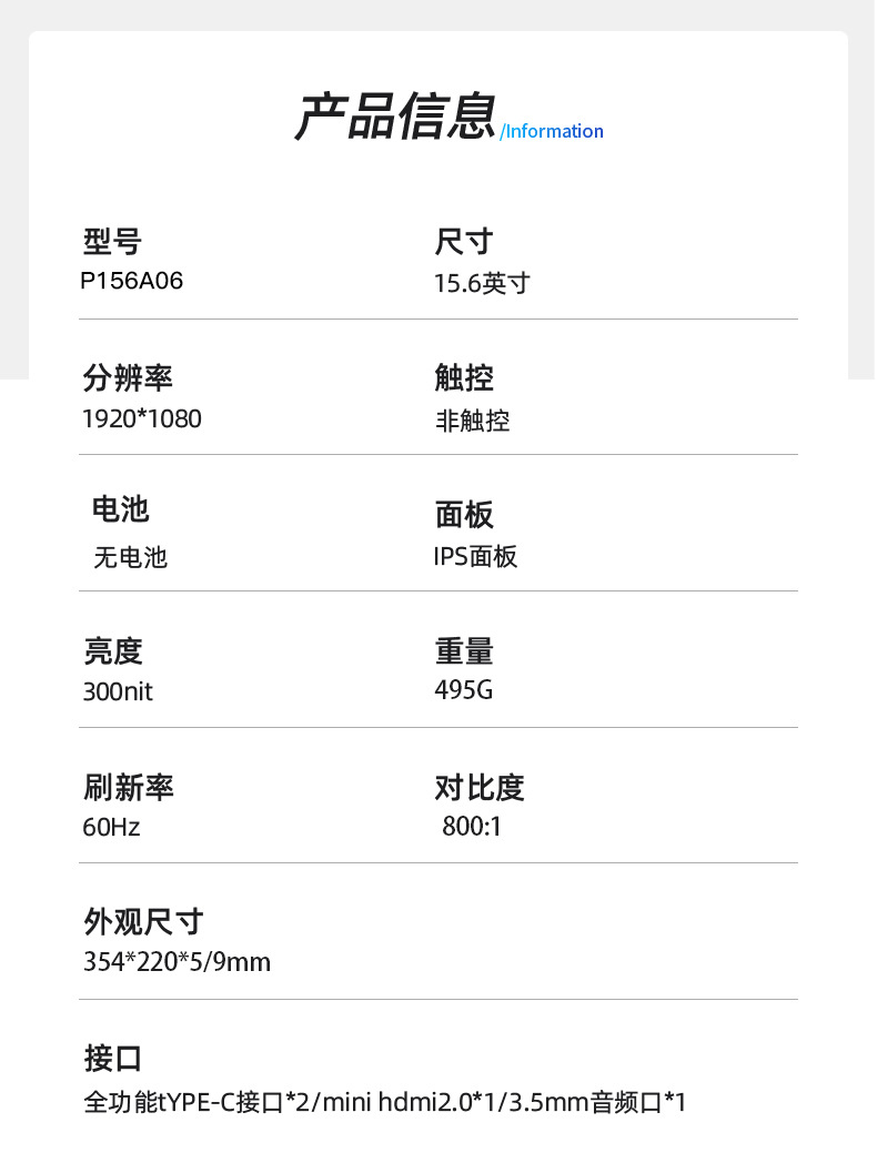 • 15.6inch -1080P-듀얼 스크린(S156A06D) 3C 포트
