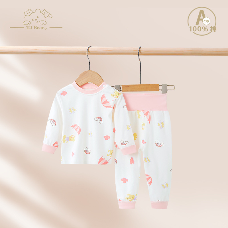 어린이 속옷 세트 봄 가을 순면 남녀 아기 하이웨이스트 배 보호 잠옷 유아 가을옷 가을바지 만화 따뜻함