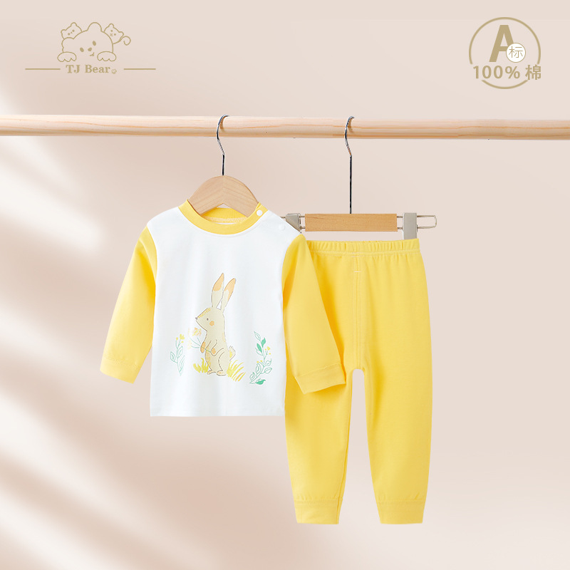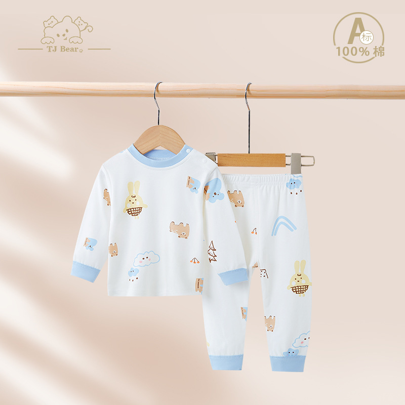 어린이 속옷 세트 봄 가을 순면 남녀 아기 하이웨이스트 배 보호 잠옷 유아 가을옷 가을바지 만화 따뜻함스토어 가기