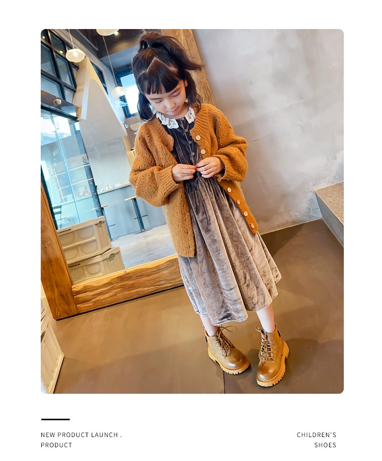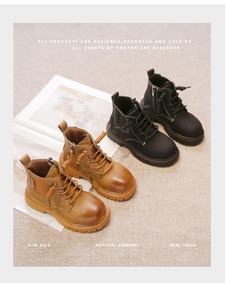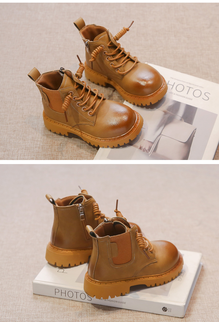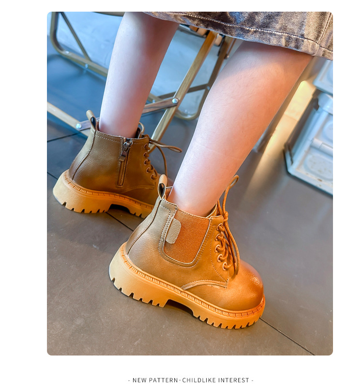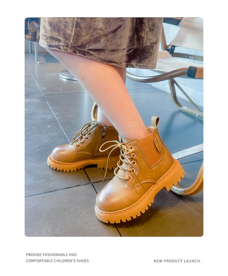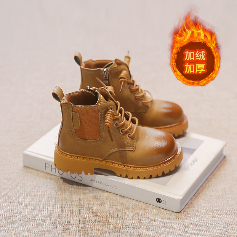 어린이 마틴 부츠 2025 가을 겨울 신상품 가죽 부츠 플러스 벨벳 보온 남아 패션 부츠 중대형 어린이 여아 숏부츠