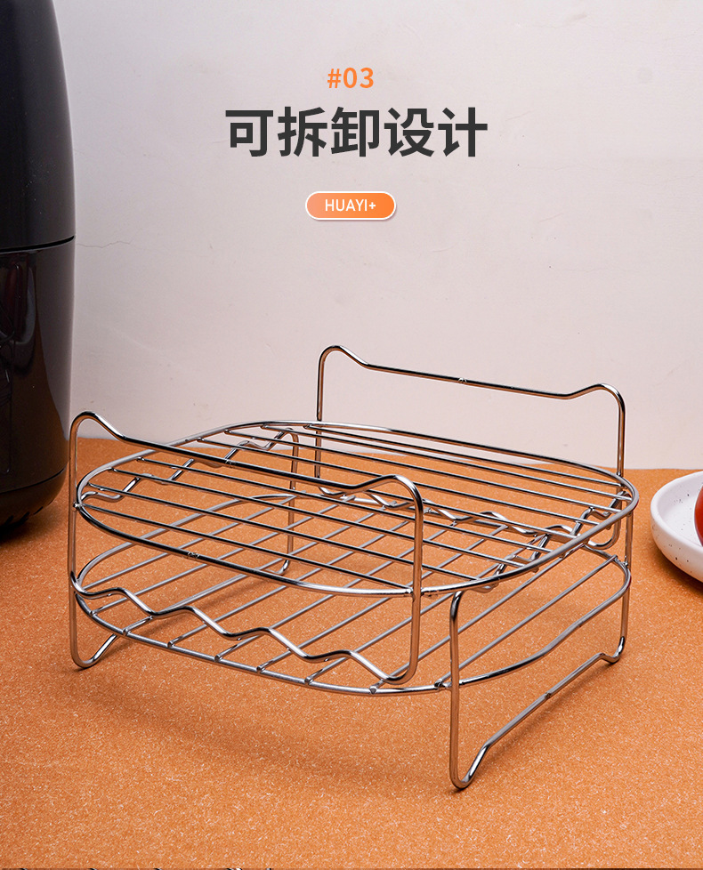 에어 프라이어 그릴 430 스테인레스 스틸 더블 레이어 스팀 랙 라운드 바베큐 랙 생선 랙 토스트 빵 랙