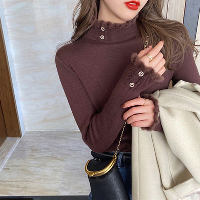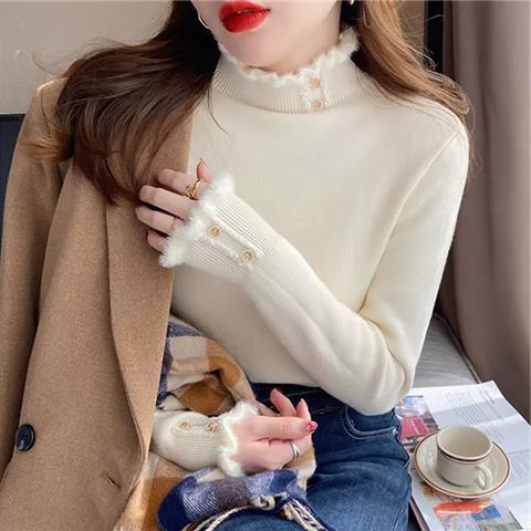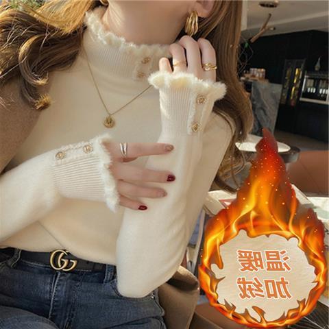 【양롱세가】캐시미어 여성용 스웨터, 하프 터틀넥, 플러스 벨벳, 두꺼운 스웨터, 보온 기능, 일체형 벨벳 안감, 울 베이스레이어스토어 가기