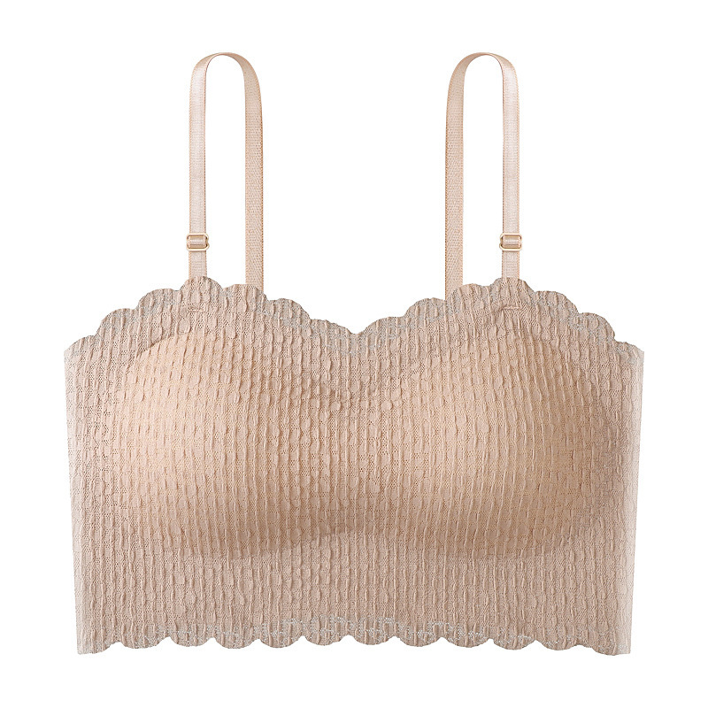 끈이없는 레이스 속옷 여성의 아름다운 등받이 얇은 어깨 브래지어 작은 캐미솔 안티 러닝 라이트 랩 여름 얇은 조끼스토어 가기
