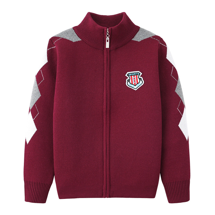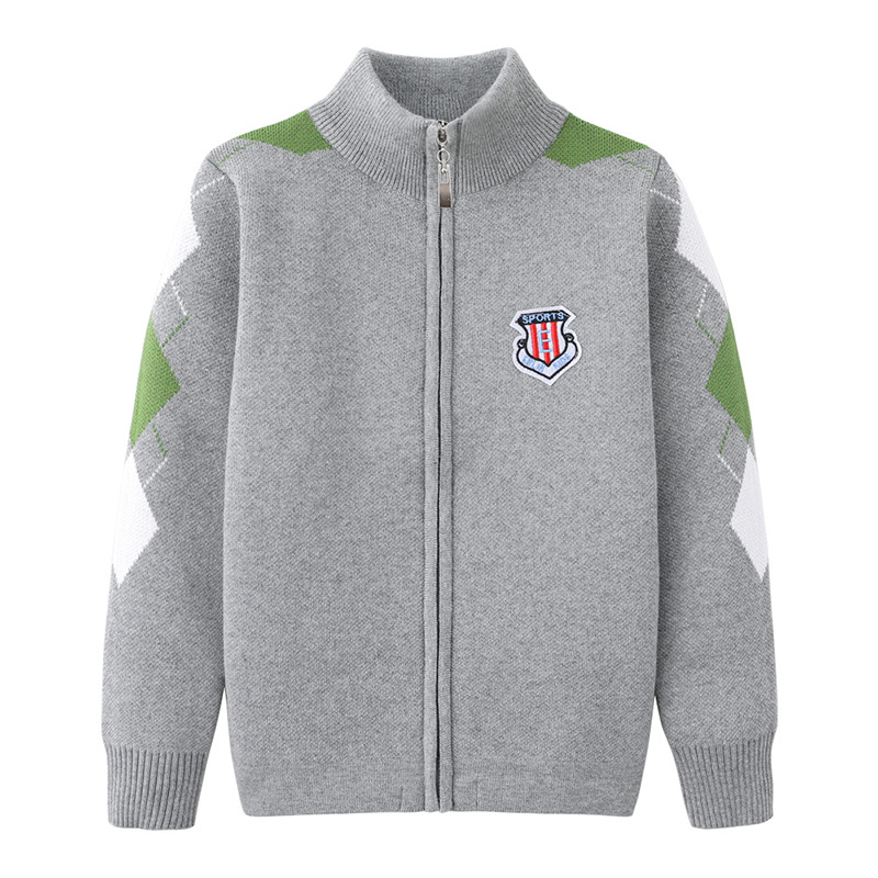 가을과 겨울 두꺼운 스탠드 칼라 자카드 큰 어린이 니트 카디건 긴 소매 코트 소년 소녀 지퍼 스웨터 카디건