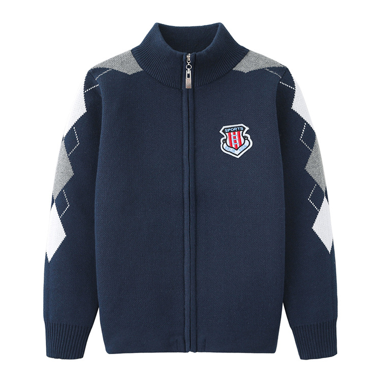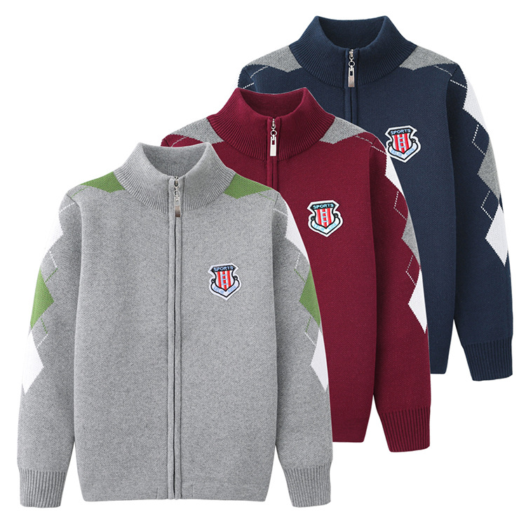 가을과 겨울 두꺼운 스탠드 칼라 자카드 큰 어린이 니트 카디건 긴 소매 코트 소년 소녀 지퍼 스웨터 카디건스토어 가기
