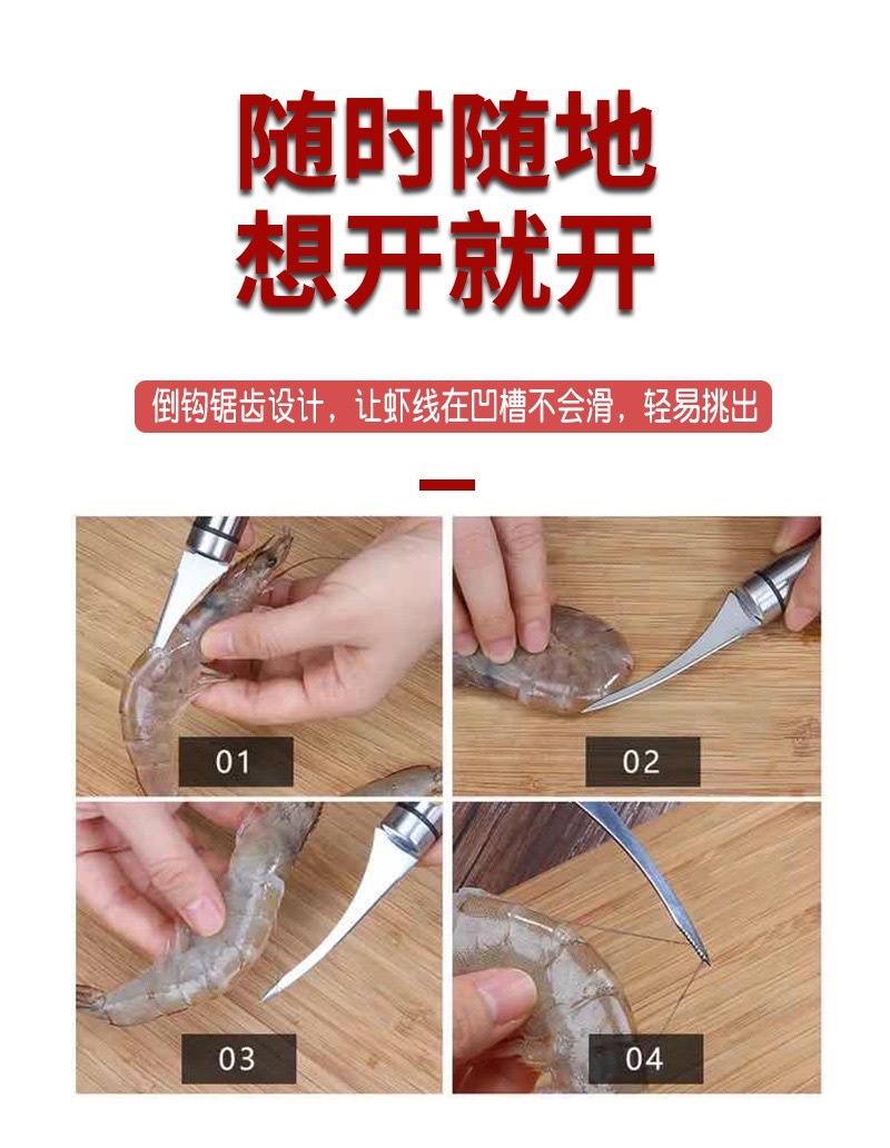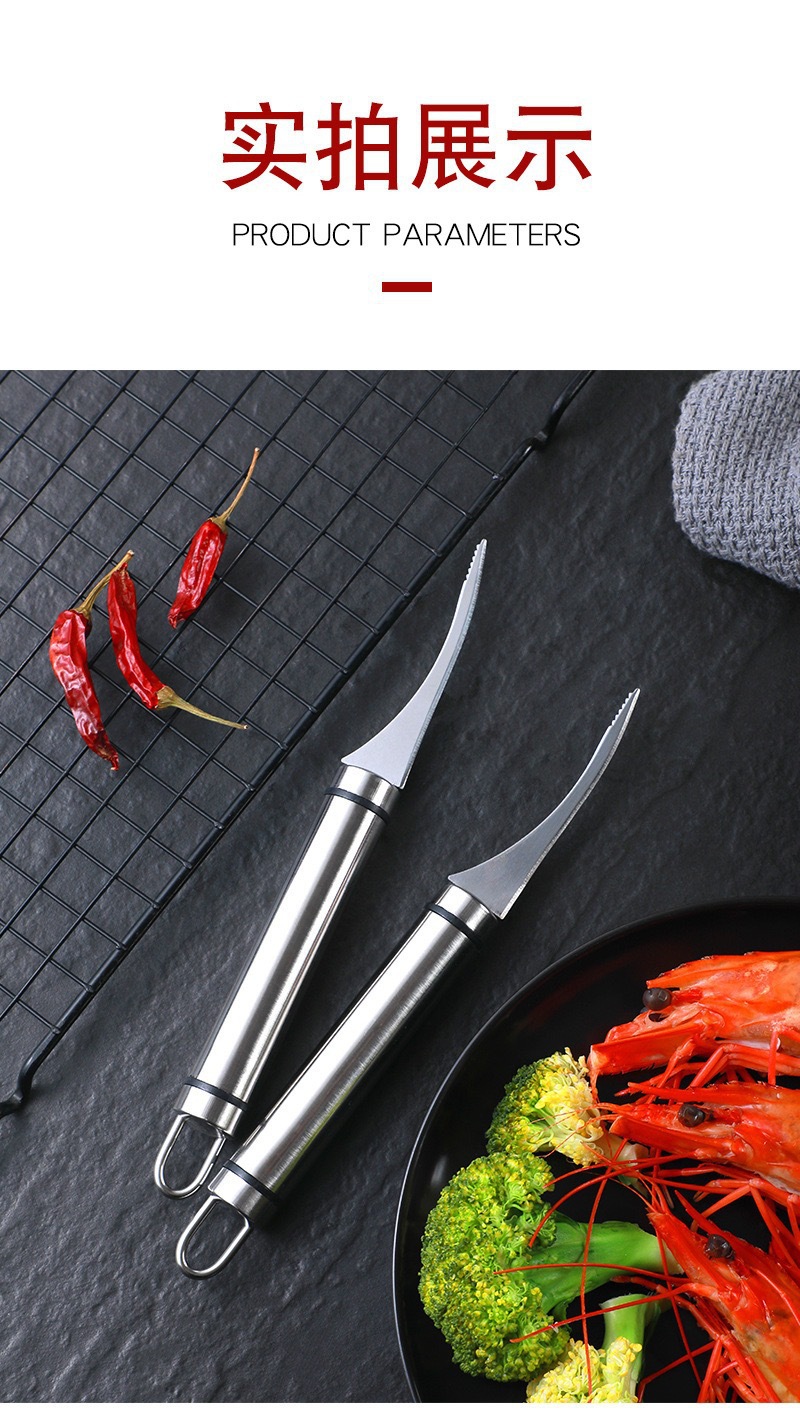 새우 라인 제거 칼 새우 라인 제거 칼 유물 다기능 스테인레스 스틸 양방향 물고기 새우 칼 선택 새우 쉘 개방 굴 유물