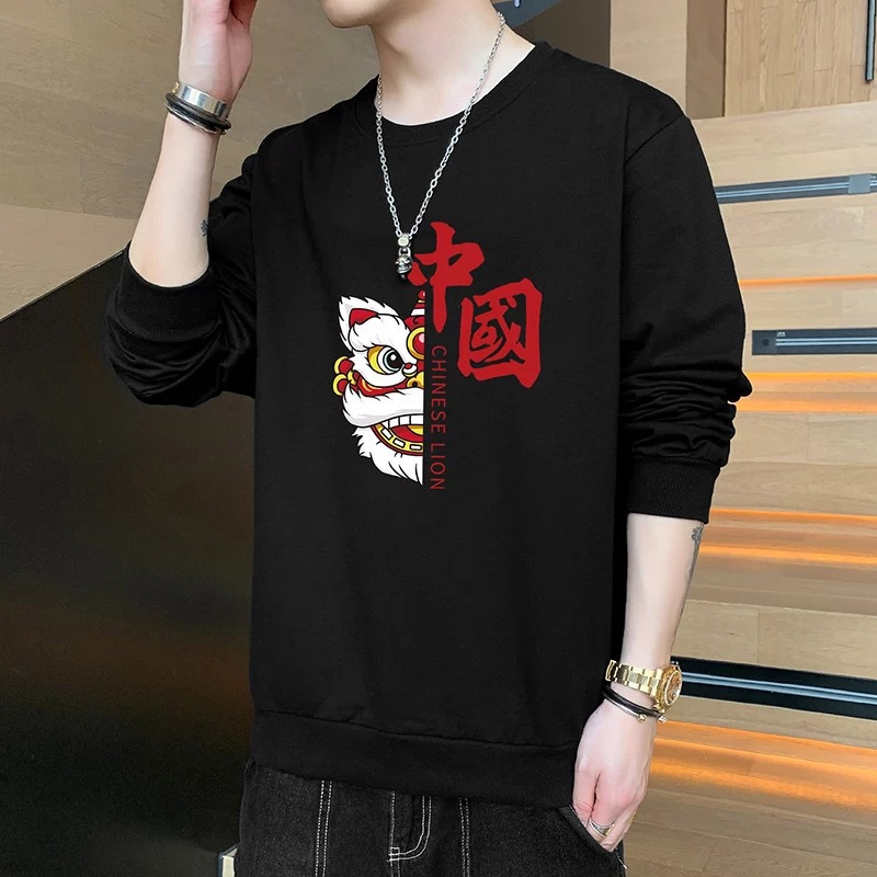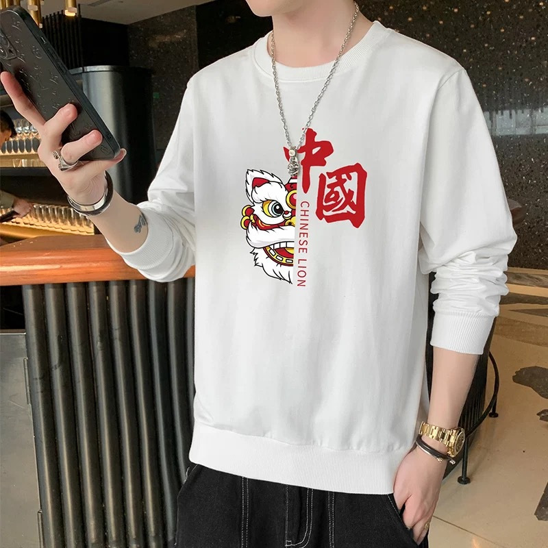 2023 내셔널 패션 스웨터 남성용 봄과 가을 라운드 넥 긴팔 티셔츠 남성 의류 중국 스타일 풀오버 베이스 t 패션 브랜드스토어 가기