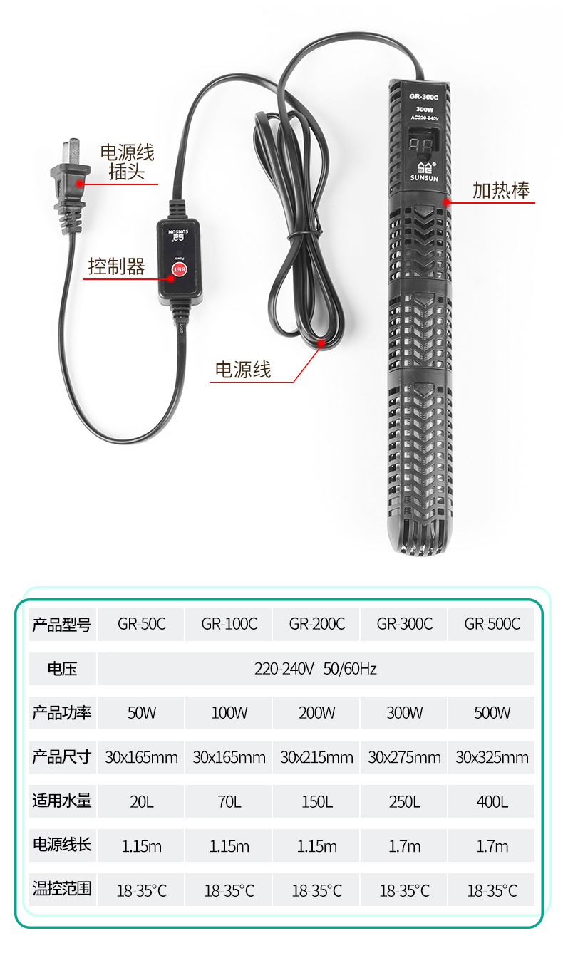 어항 히팅로드 레드 앵무새 석영 유리 디지털 디스플레이 거북이 수족관 자동 온도 조절기 GR 시리즈