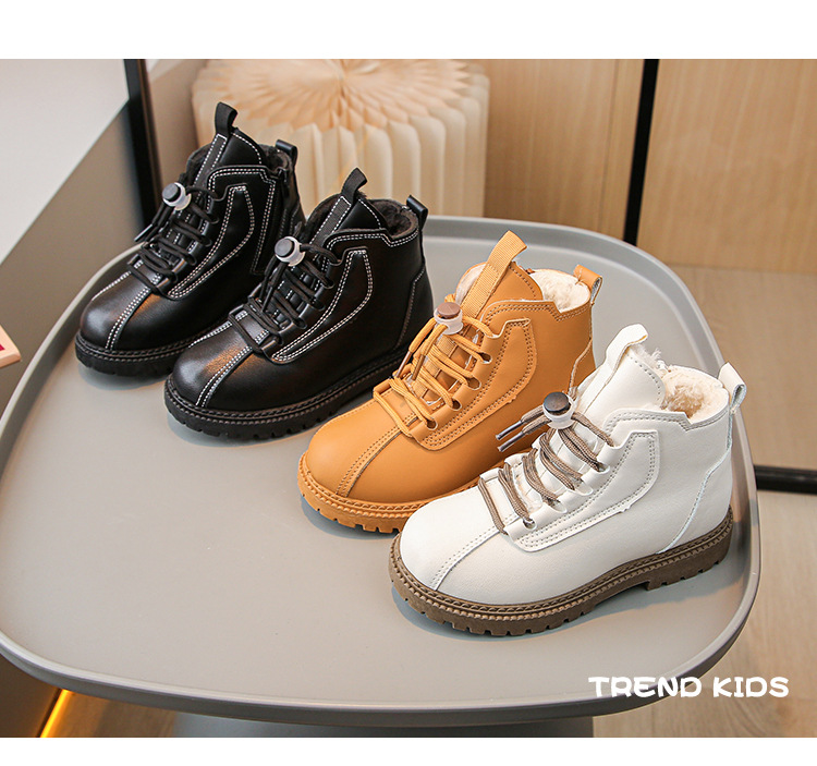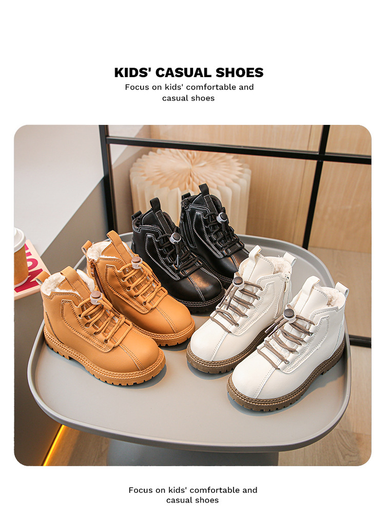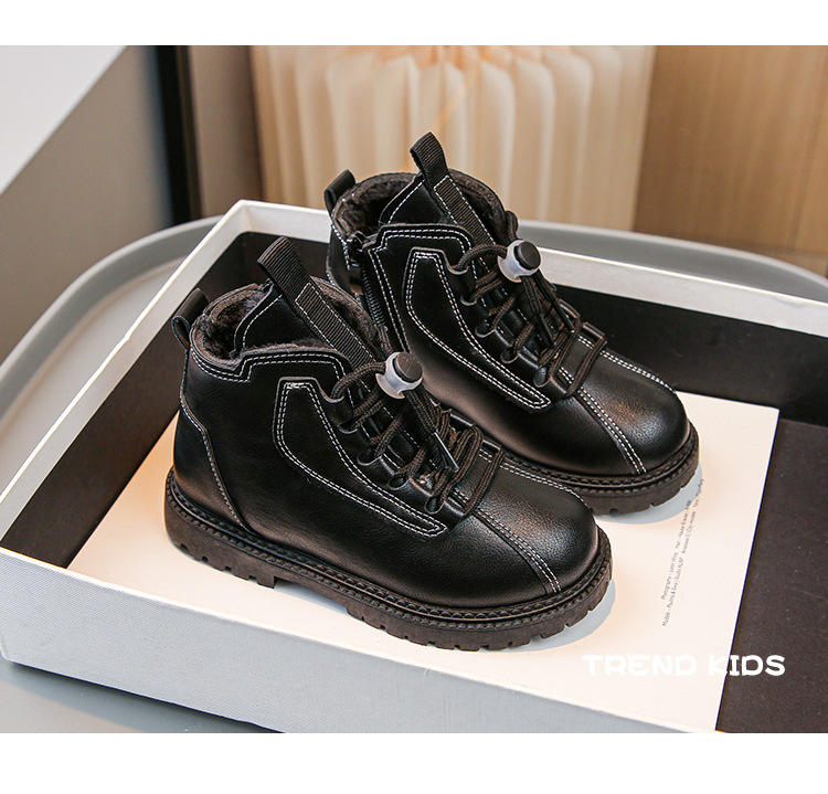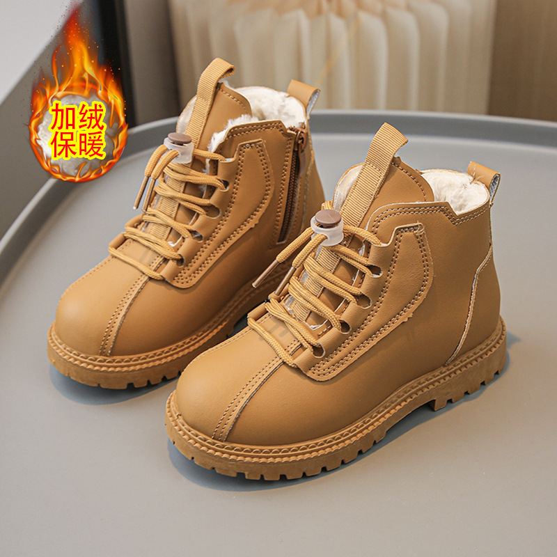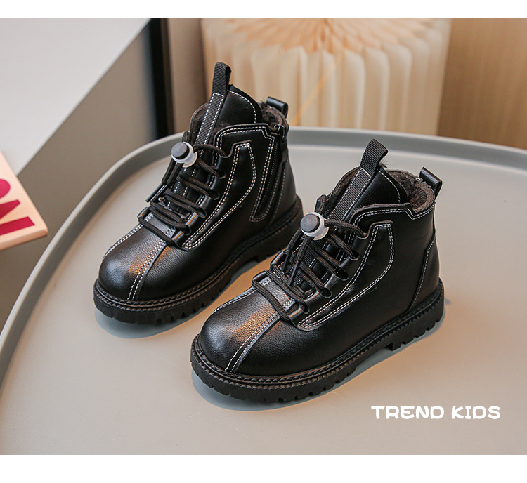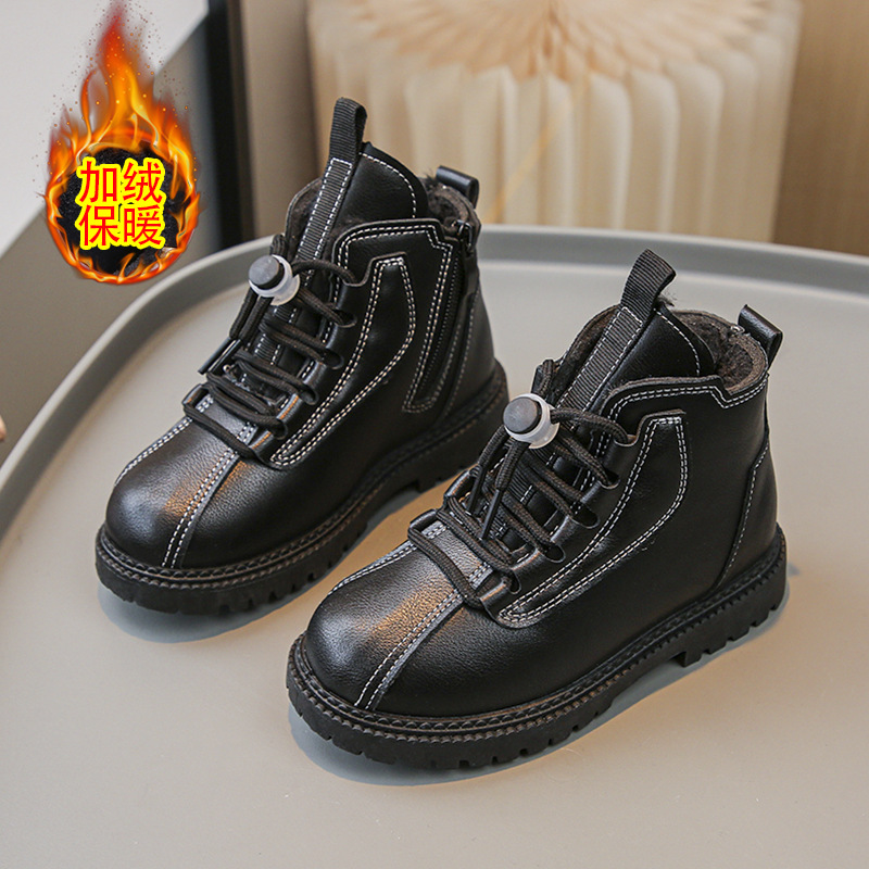 2025 가을 겨울 신상 아동용 가죽 부츠 남아 패션 캐주얼 숏부츠 어린이 한국 스타일 여아 가죽 면 부츠