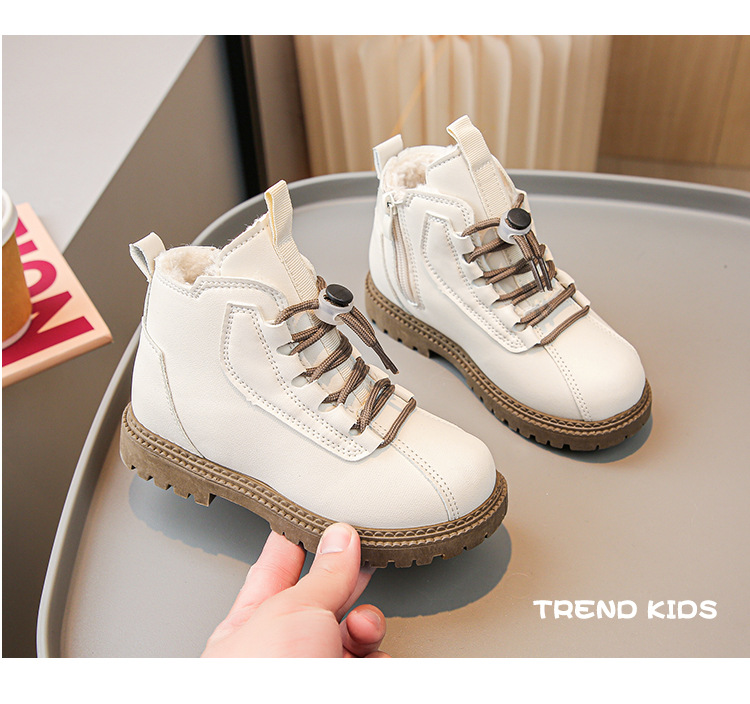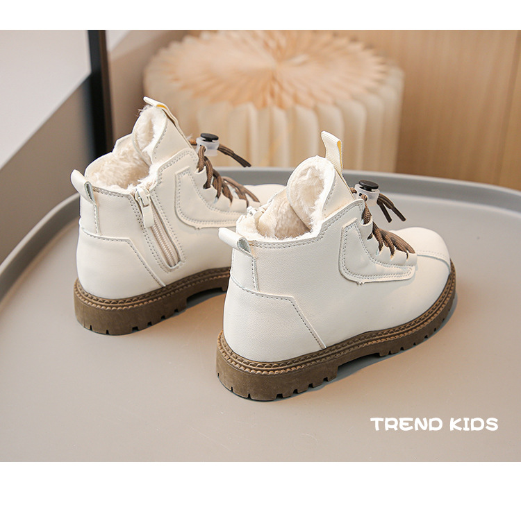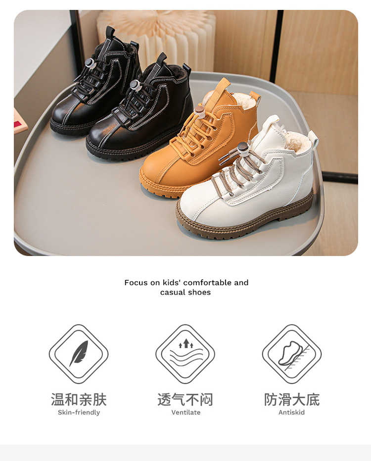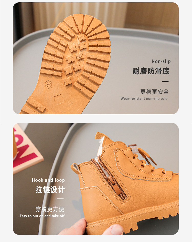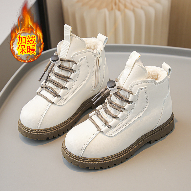 2025 가을 겨울 신상 아동용 가죽 부츠 남아 패션 캐주얼 숏부츠 어린이 한국 스타일 여아 가죽 면 부츠