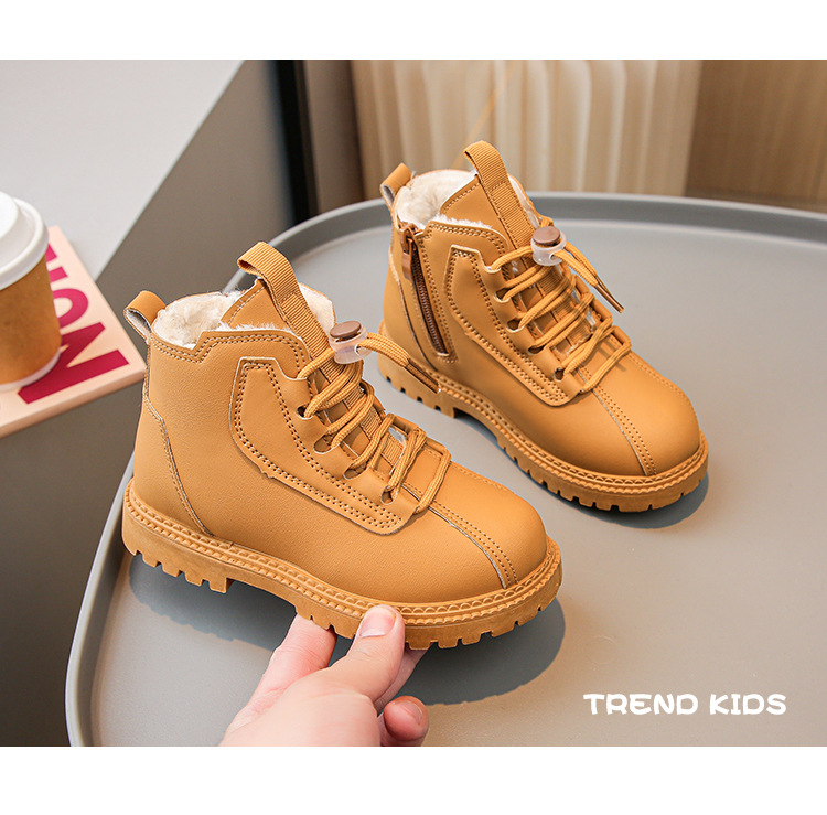 2025 가을 겨울 신상 아동용 가죽 부츠 남아 패션 캐주얼 숏부츠 어린이 한국 스타일 여아 가죽 면 부츠스토어 가기