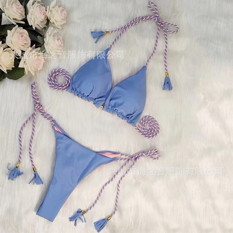 2024 새로운 수영복 대외 무역 유럽과 미국 섹시 대조 컬러 로프 비키니 하이 웨이스트 스플릿 여성 수영복 비키니스토어 가기