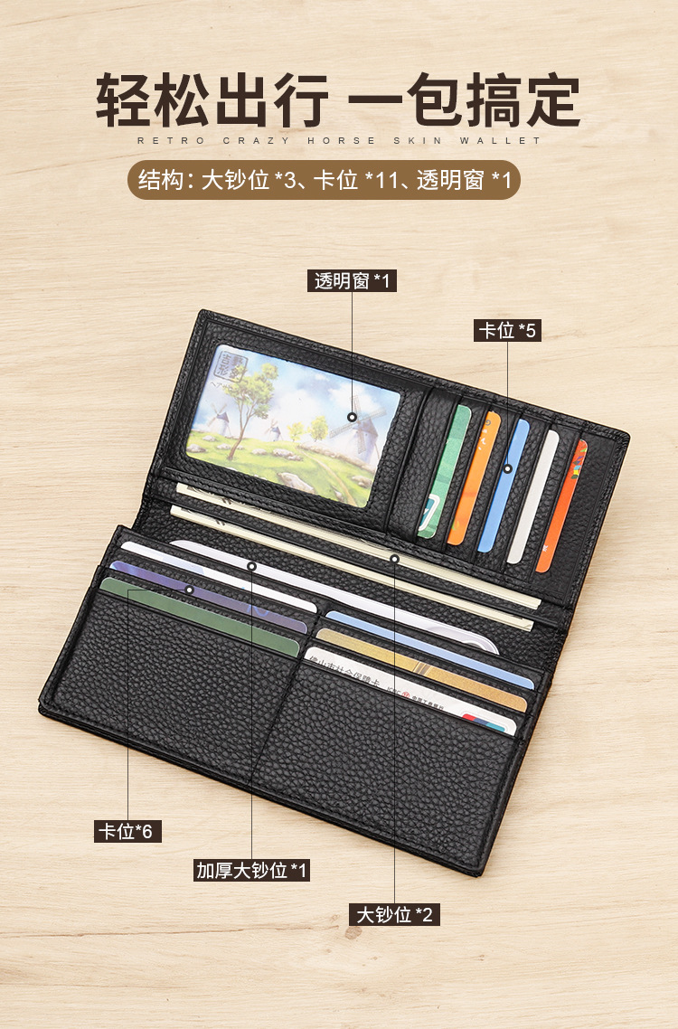 남성용 정품 가죽 장지갑, 멀티 카드 슬롯, 크로스보더 카드 홀더, 1층 소가죽, 아마존 직배송 1008