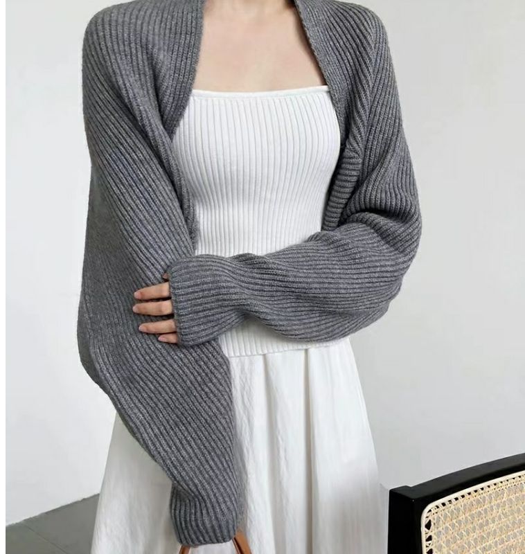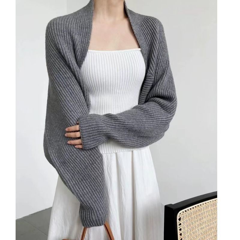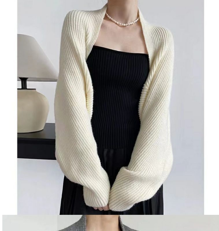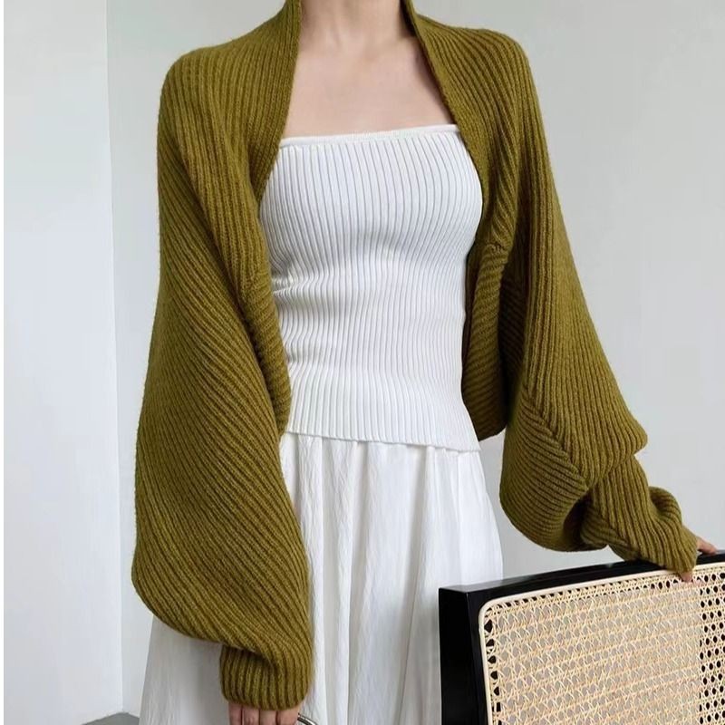 두꺼운 하이 엔드 우아한 조끼 니트 카디건 재킷 여성의 가을과 겨울 배트윙 슬리브 스웨터 짧은 숄