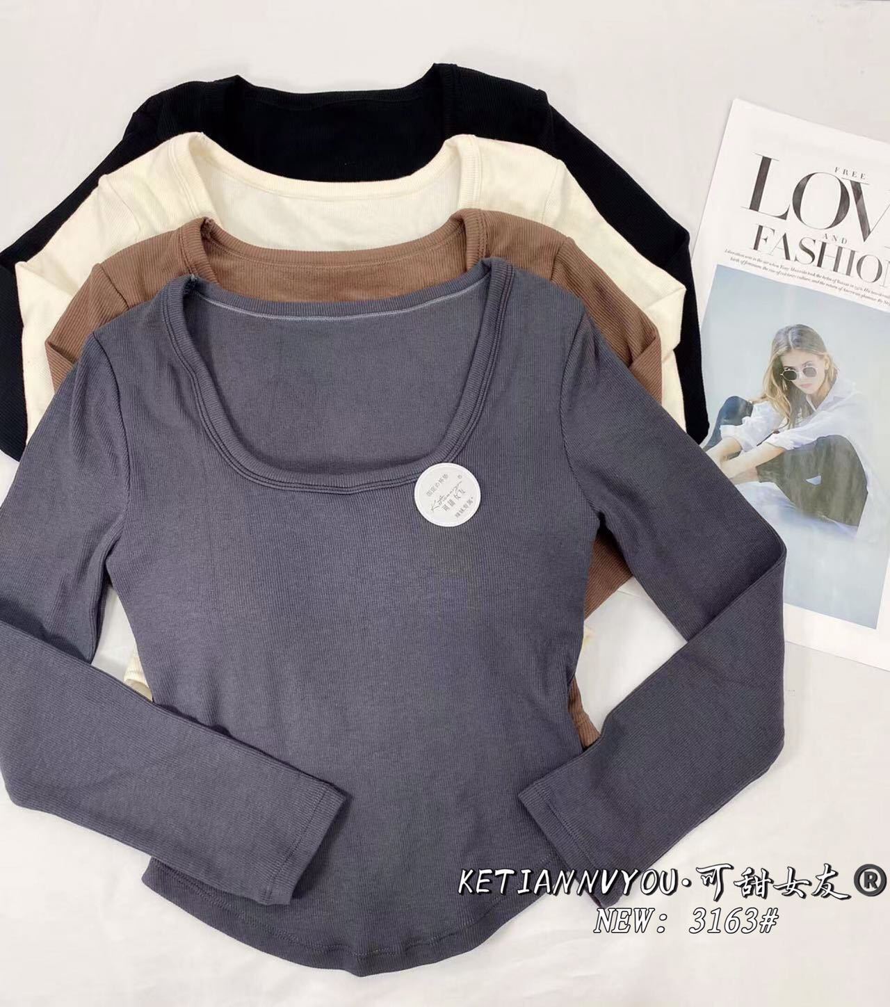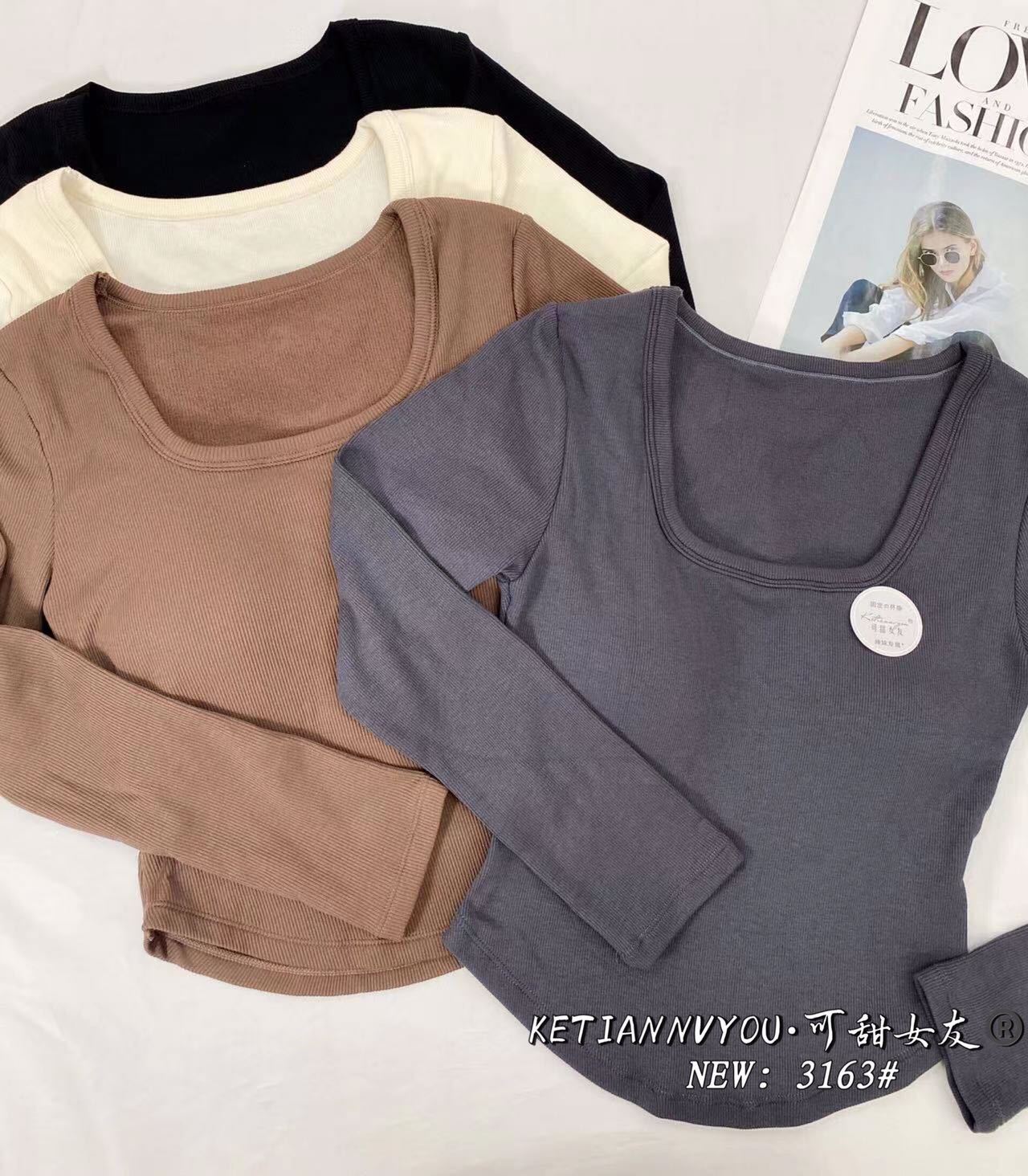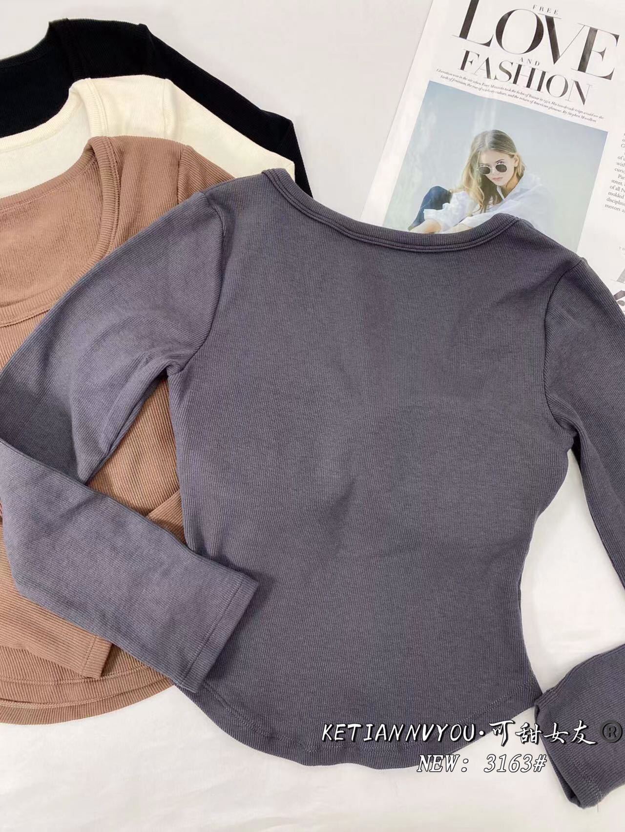 가을과 겨울 새로운 프랑스 스타일 레트로 스퀘어 칼라 긴 소매 가슴 패드 원피스 슬림핏 슬리밍 베이스 탑 여성용 베이스 셔츠