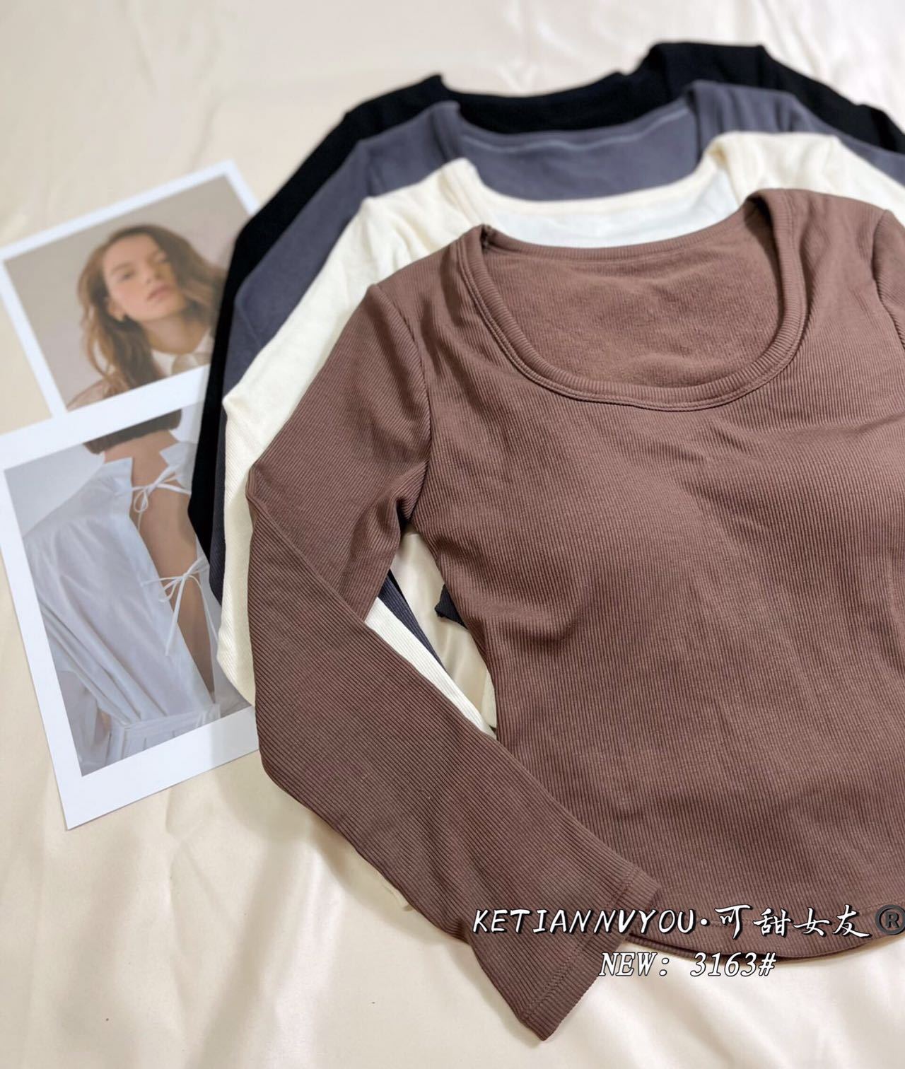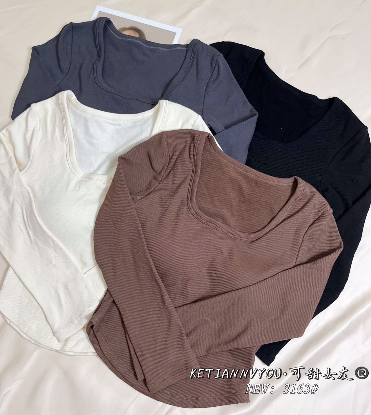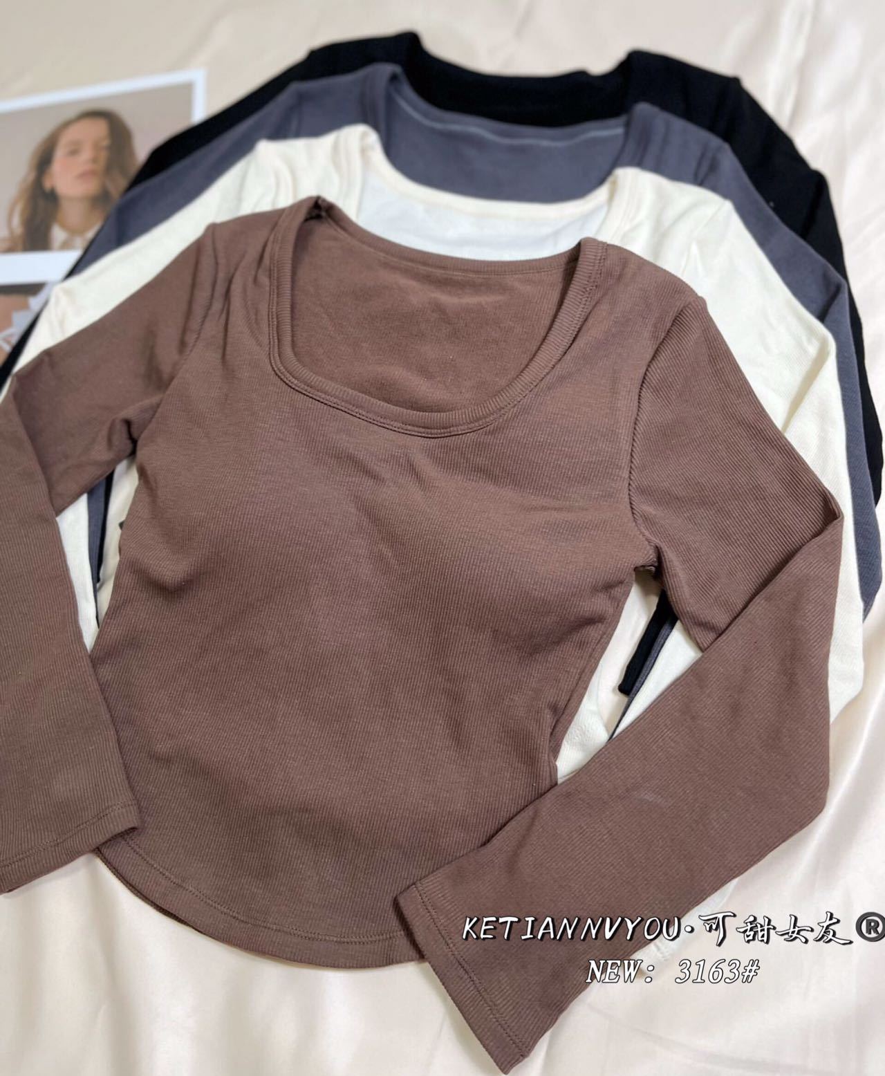 가을과 겨울 새로운 프랑스 스타일 레트로 스퀘어 칼라 긴 소매 가슴 패드 원피스 슬림핏 슬리밍 베이스 탑 여성용 베이스 셔츠