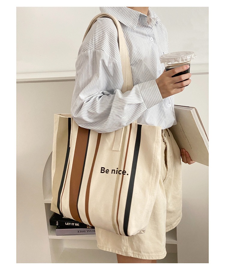 오리지널 라인 심플 숄더 캔버스 백 쇼핑백 한국 캐주얼 미술 학생 책가방 통근 컴퓨터 가방