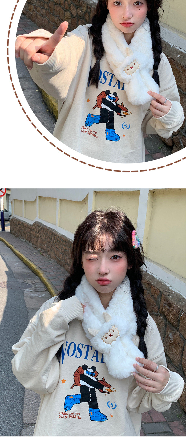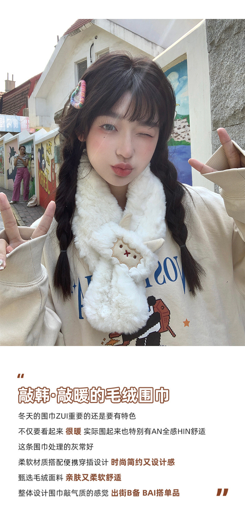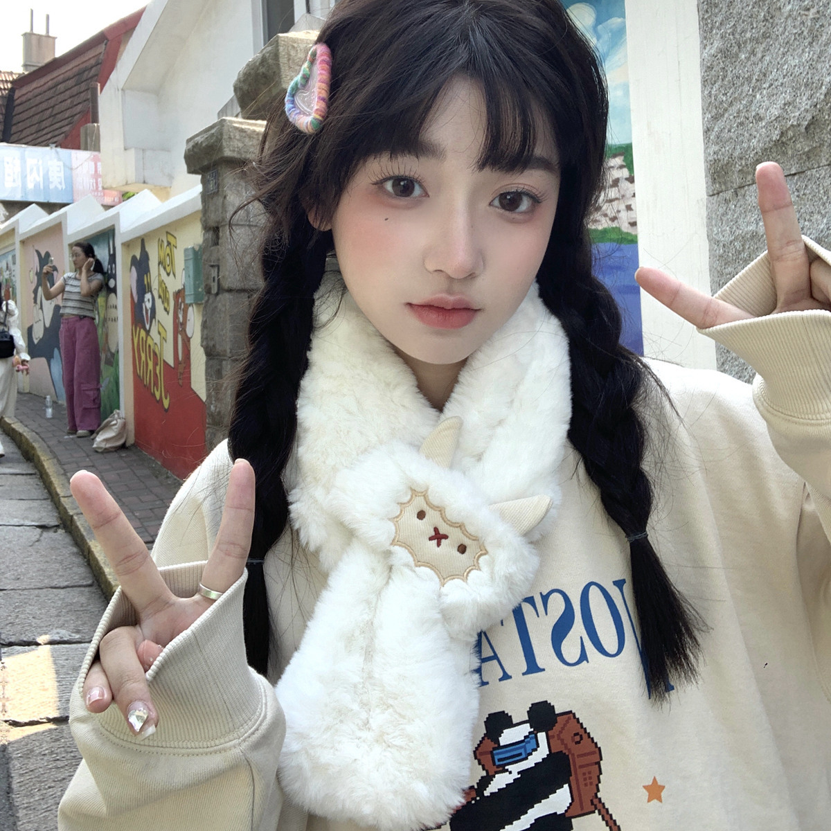 일본 만화 귀여운 양고기 크로스 봉제 스카프 여성 겨울 따뜻한 올 매치 학생 커플 짧은 스카프스토어 가기