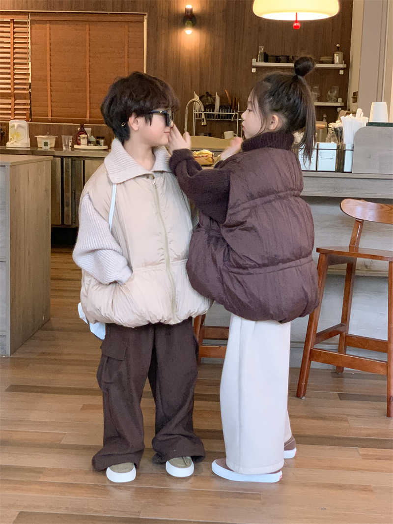 소년 소녀 다운 재킷 2023 의 한국어 버전 겨울 새로운 어린이 흰 오리 다운 조끼 아기 단색 빵 의류스토어 가기