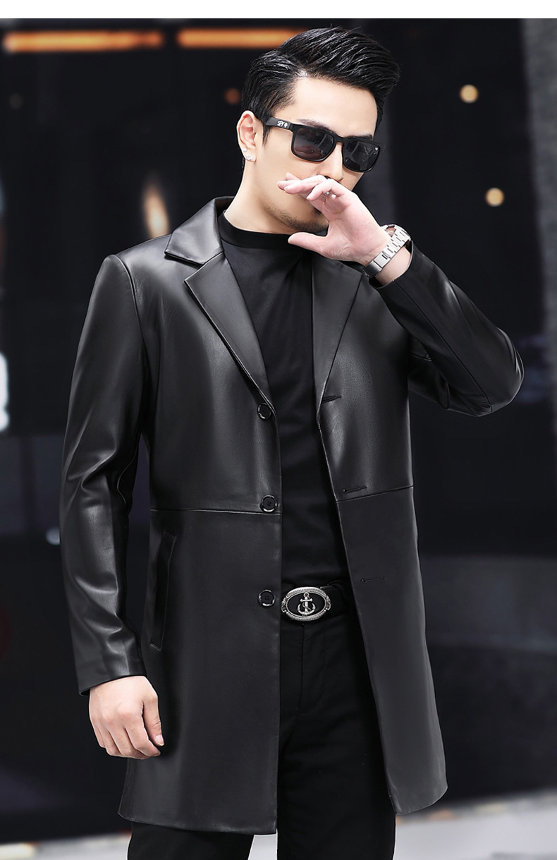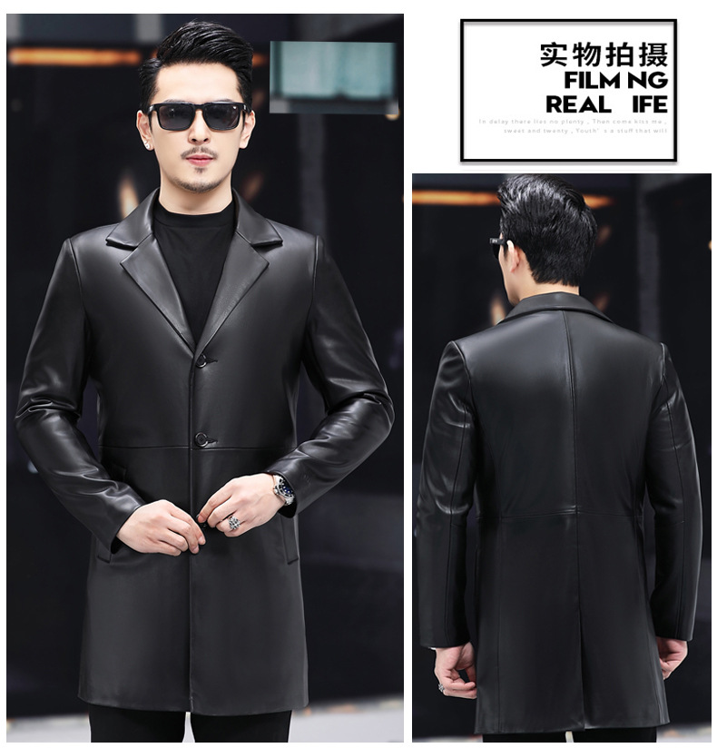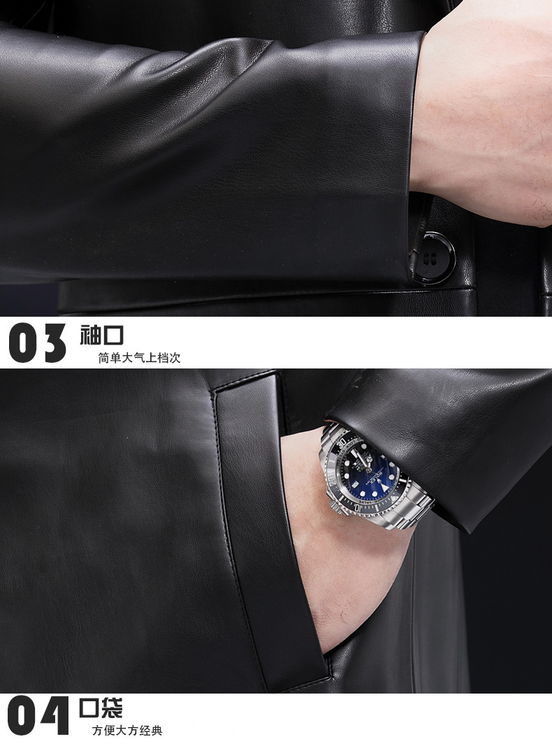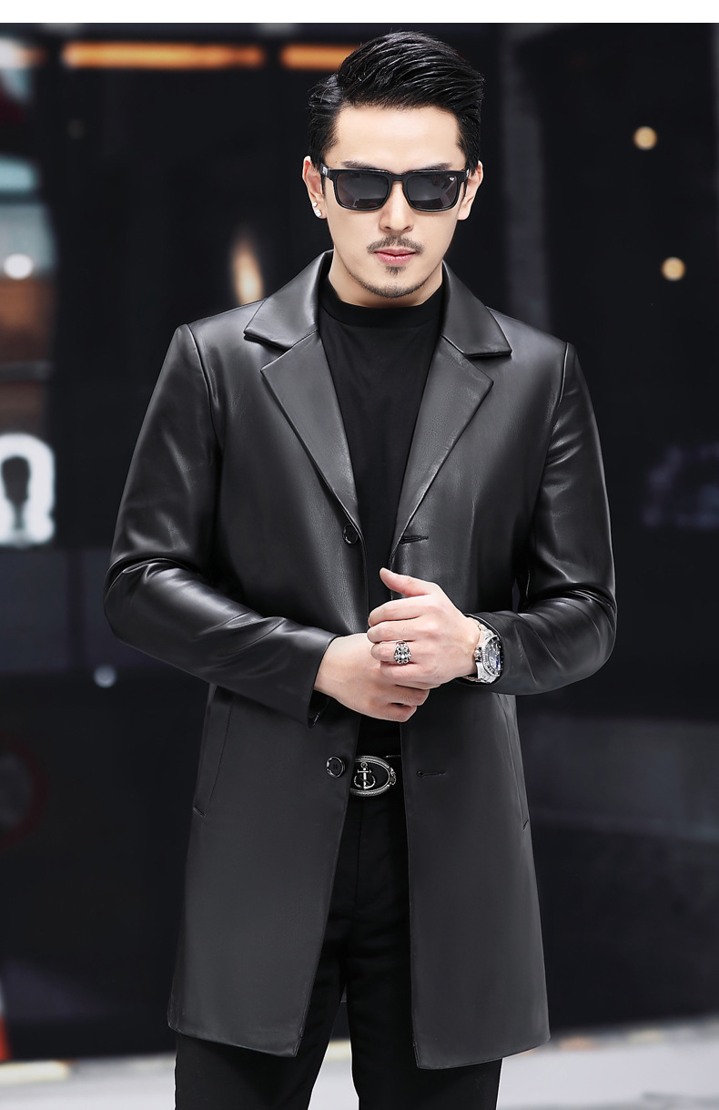2025 새로운 Haining 가죽 자켓 남자 가죽 자켓 정장 중간 길이 정장 잘 생긴 청소년 윈드 브레이커 자켓 유행