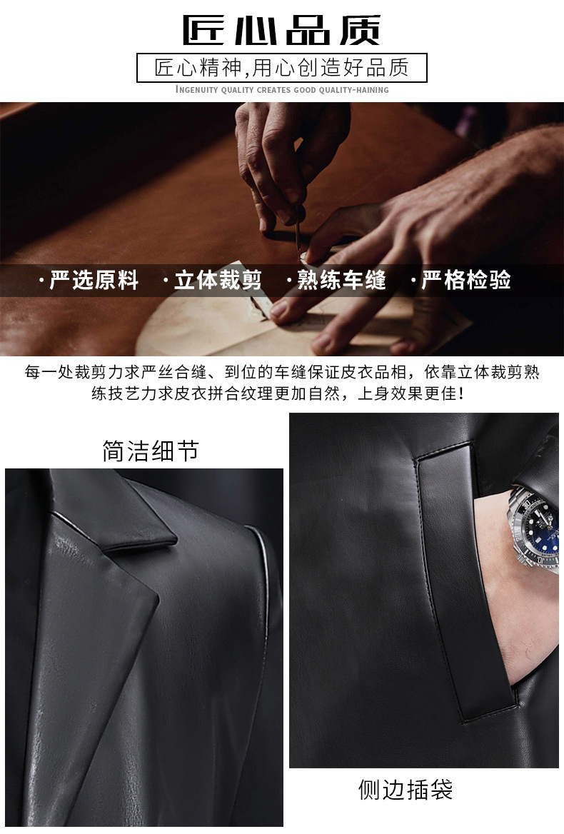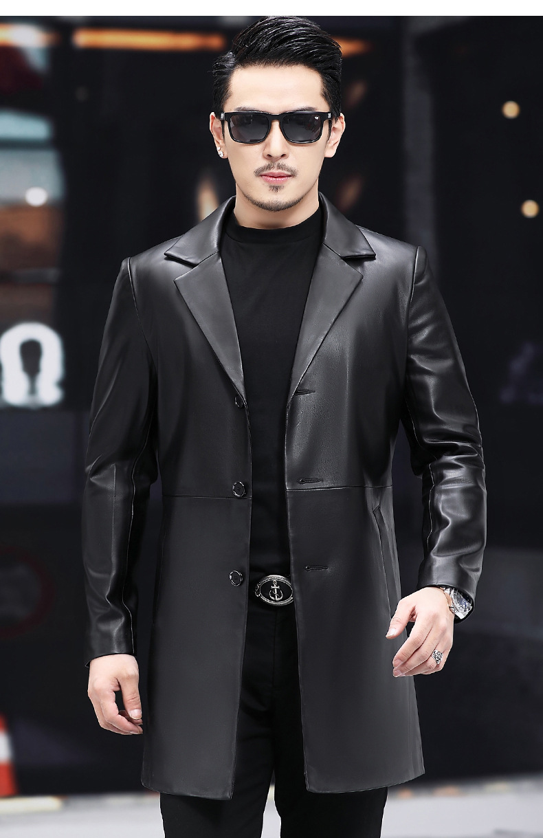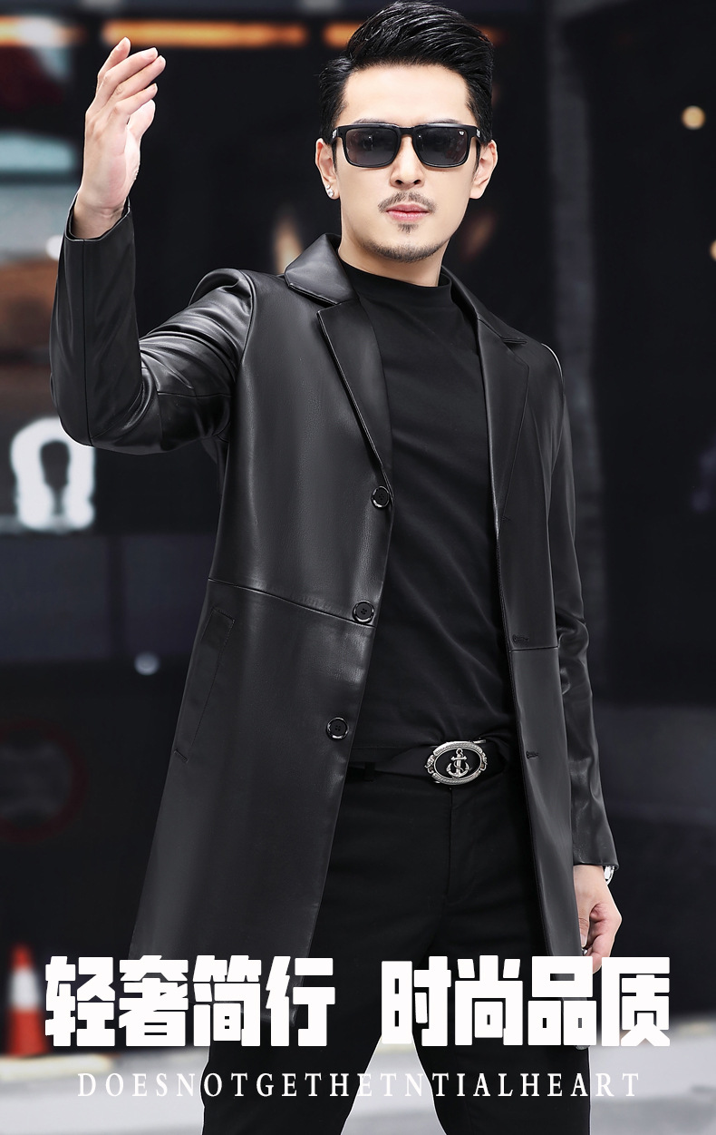 2025 새로운 Haining 가죽 자켓 남자 가죽 자켓 정장 중간 길이 정장 잘 생긴 청소년 윈드 브레이커 자켓 유행