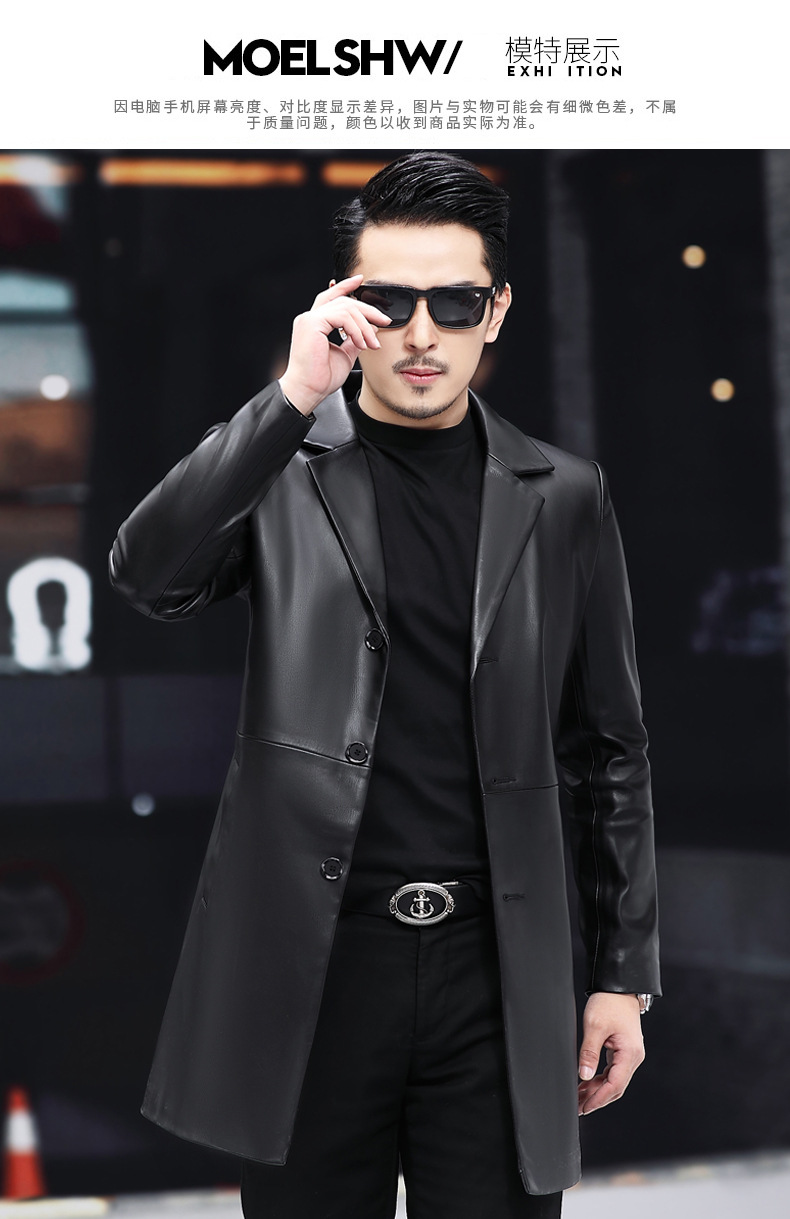 2025 새로운 Haining 가죽 자켓 남자 가죽 자켓 정장 중간 길이 정장 잘 생긴 청소년 윈드 브레이커 자켓 유행스토어 가기