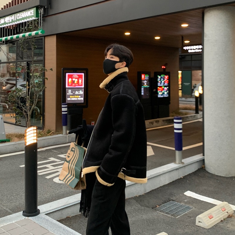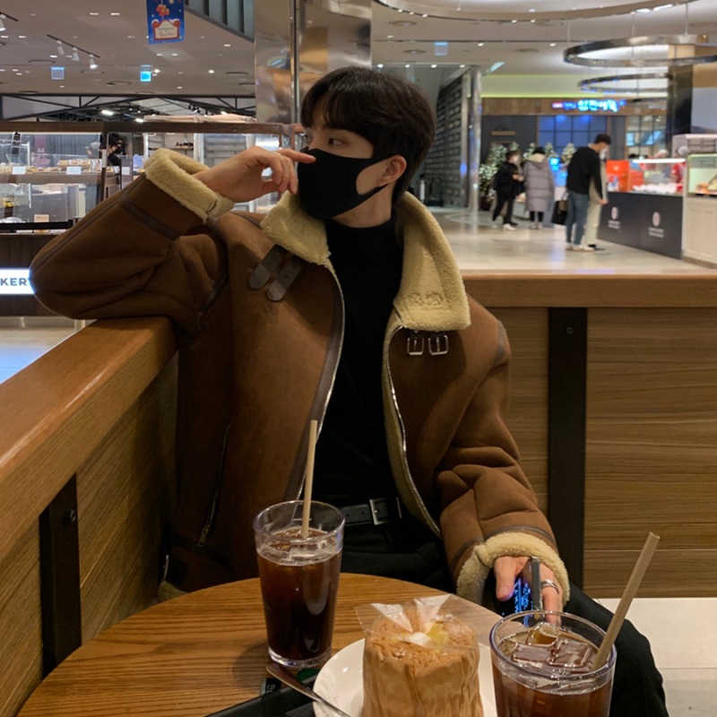 브리티시 유피 스타일 남성용 스웨이드 램 울 코튼 코트 코트 겨울 남성용 하이 센스 에비에이터 코튼 재킷