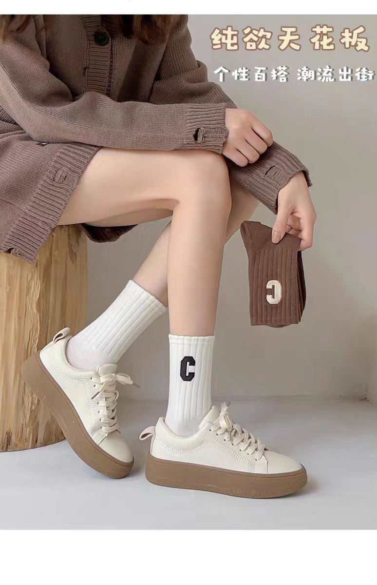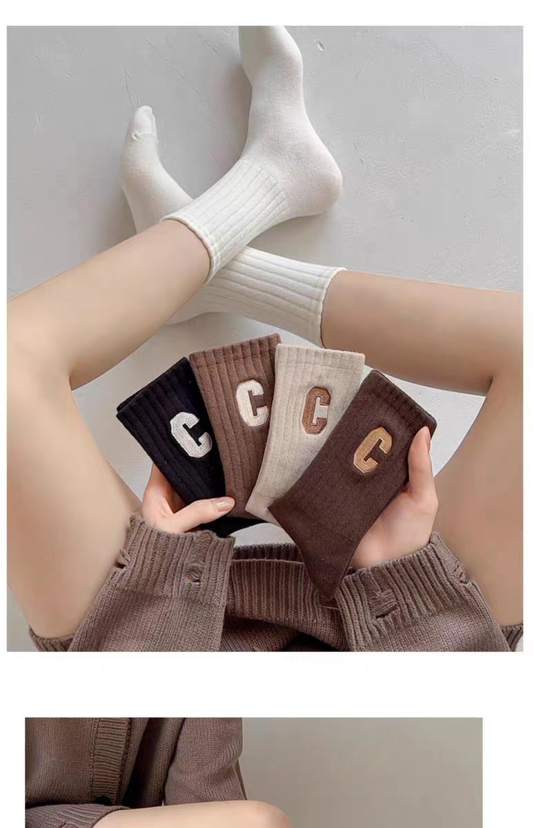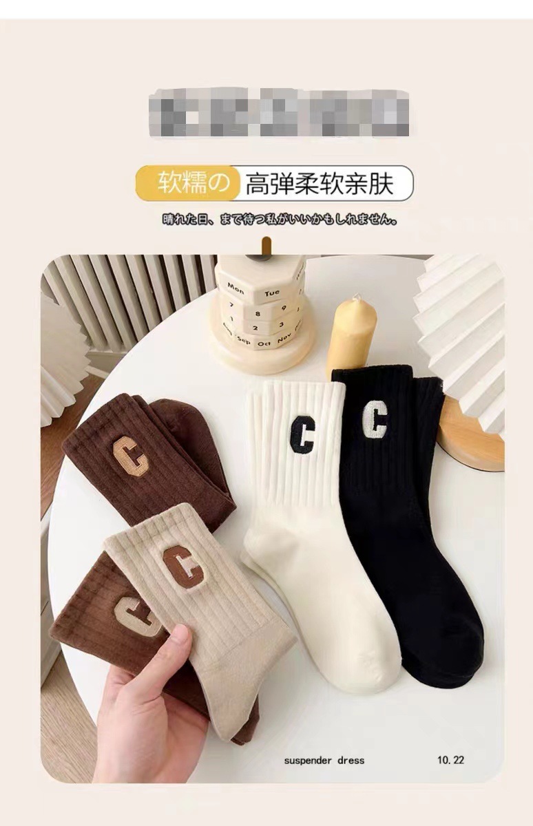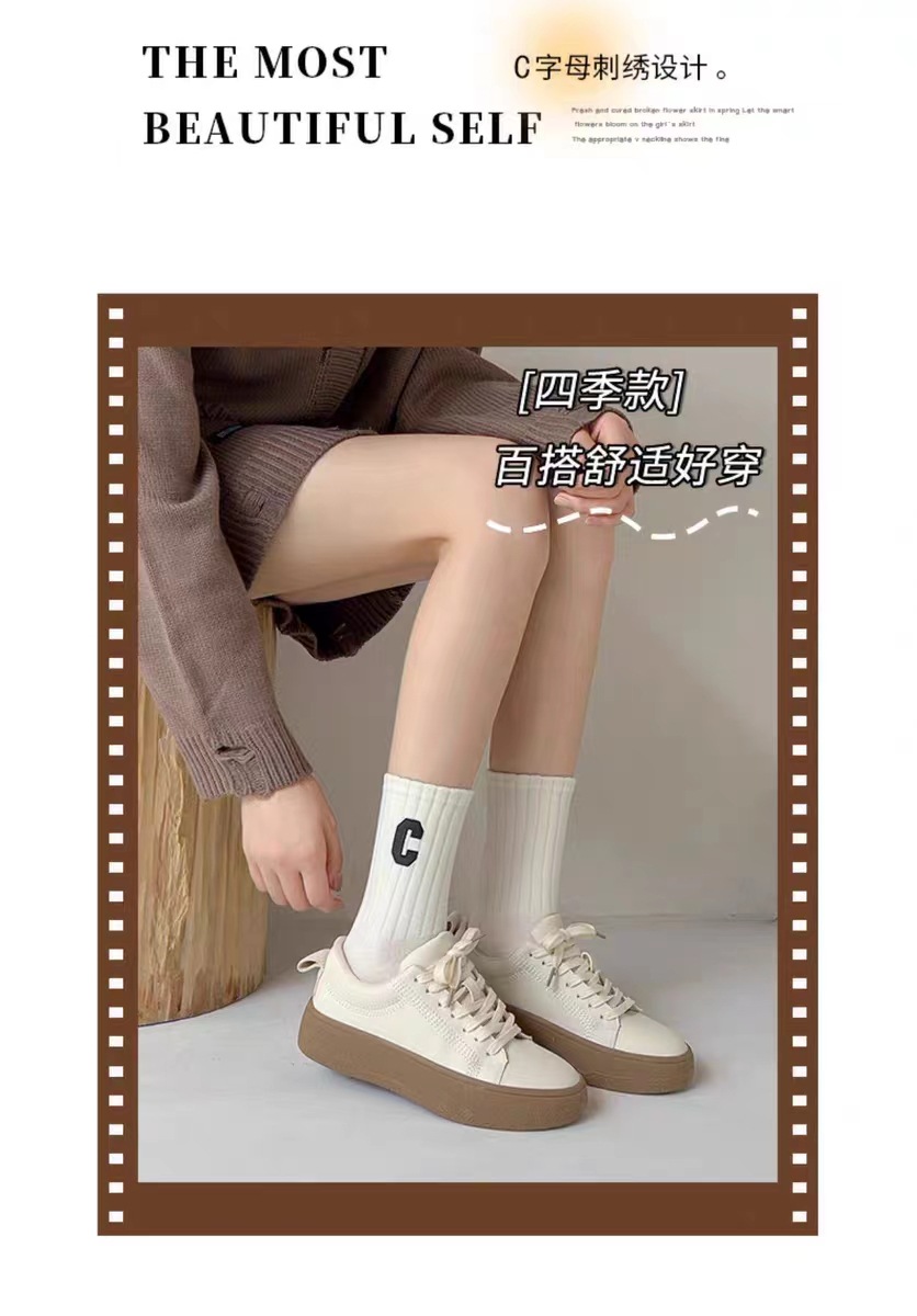 양말 여성 가을과 겨울 미드 튜브 여성 양말 빅 C 유행 양말 땀 흡수 통기성 스포츠 양말 유행 모든 경기 인터넷 연예인 여성 양말