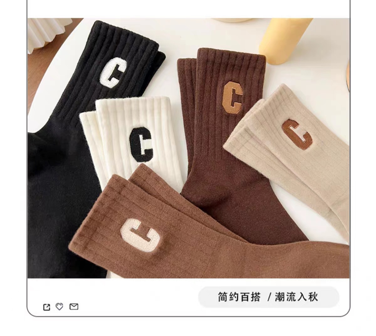 양말 여성 가을과 겨울 미드 튜브 여성 양말 빅 C 유행 양말 땀 흡수 통기성 스포츠 양말 유행 모든 경기 인터넷 연예인 여성 양말스토어 가기