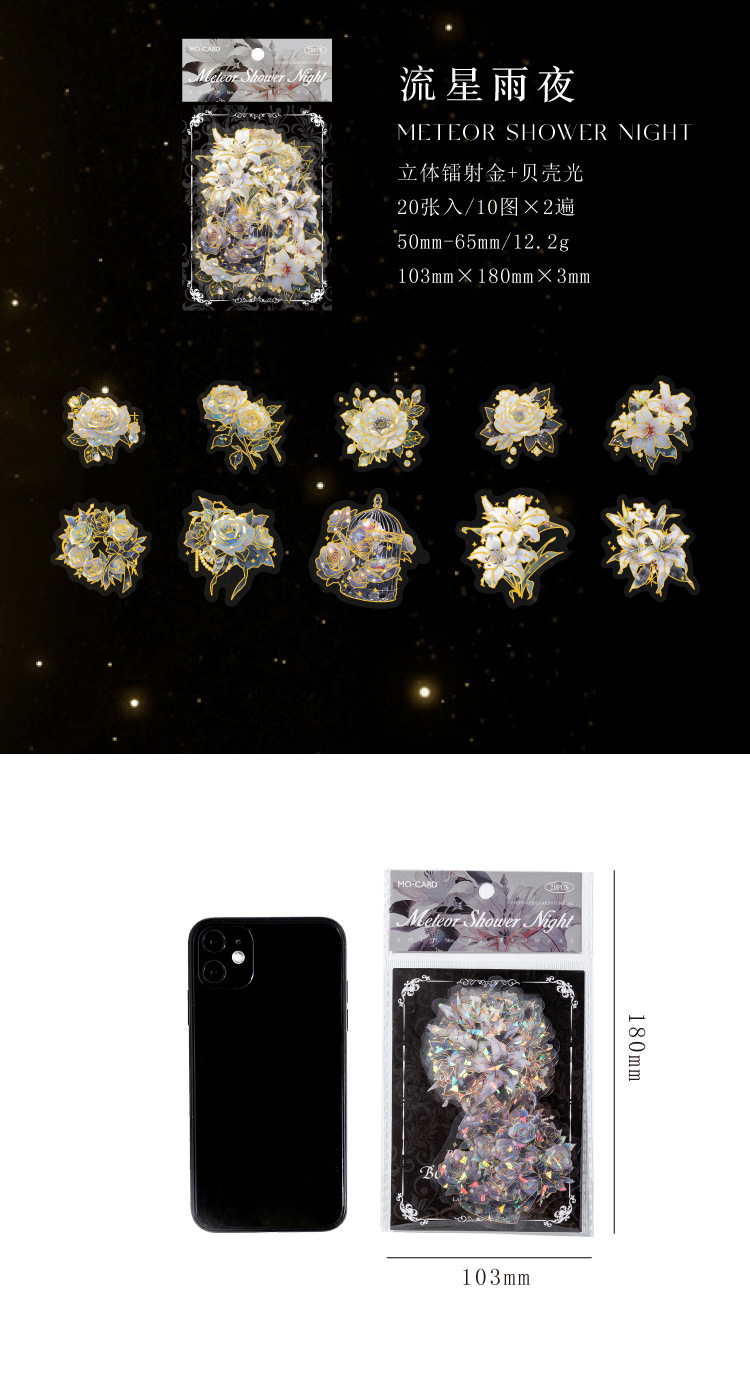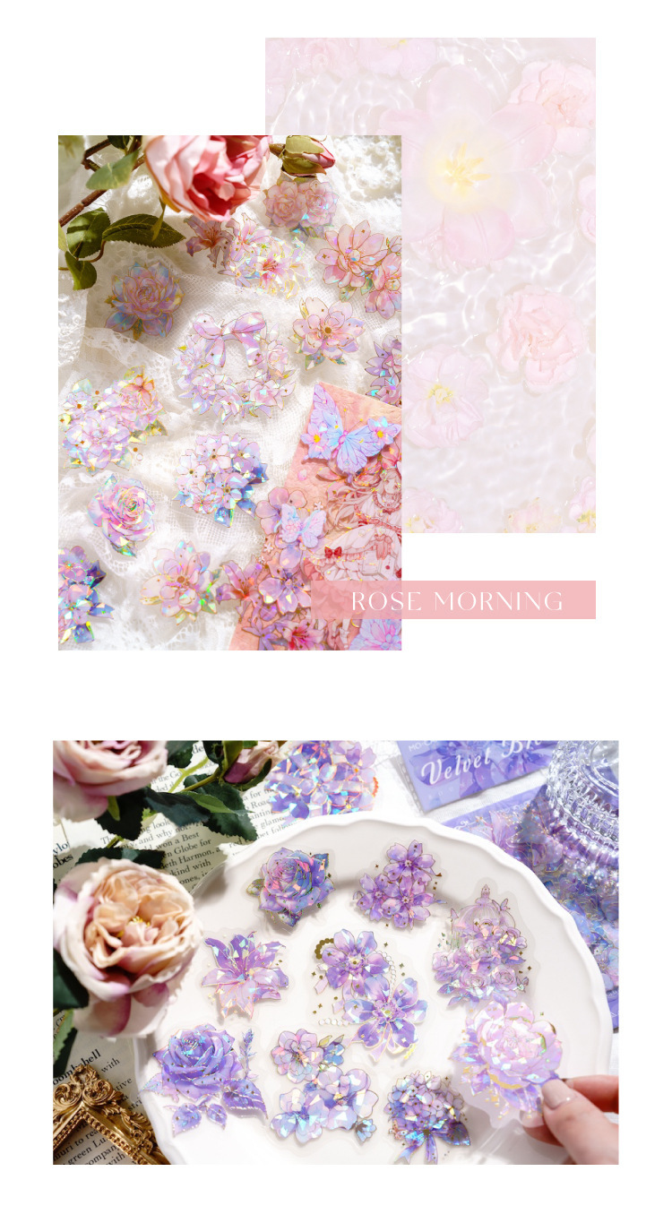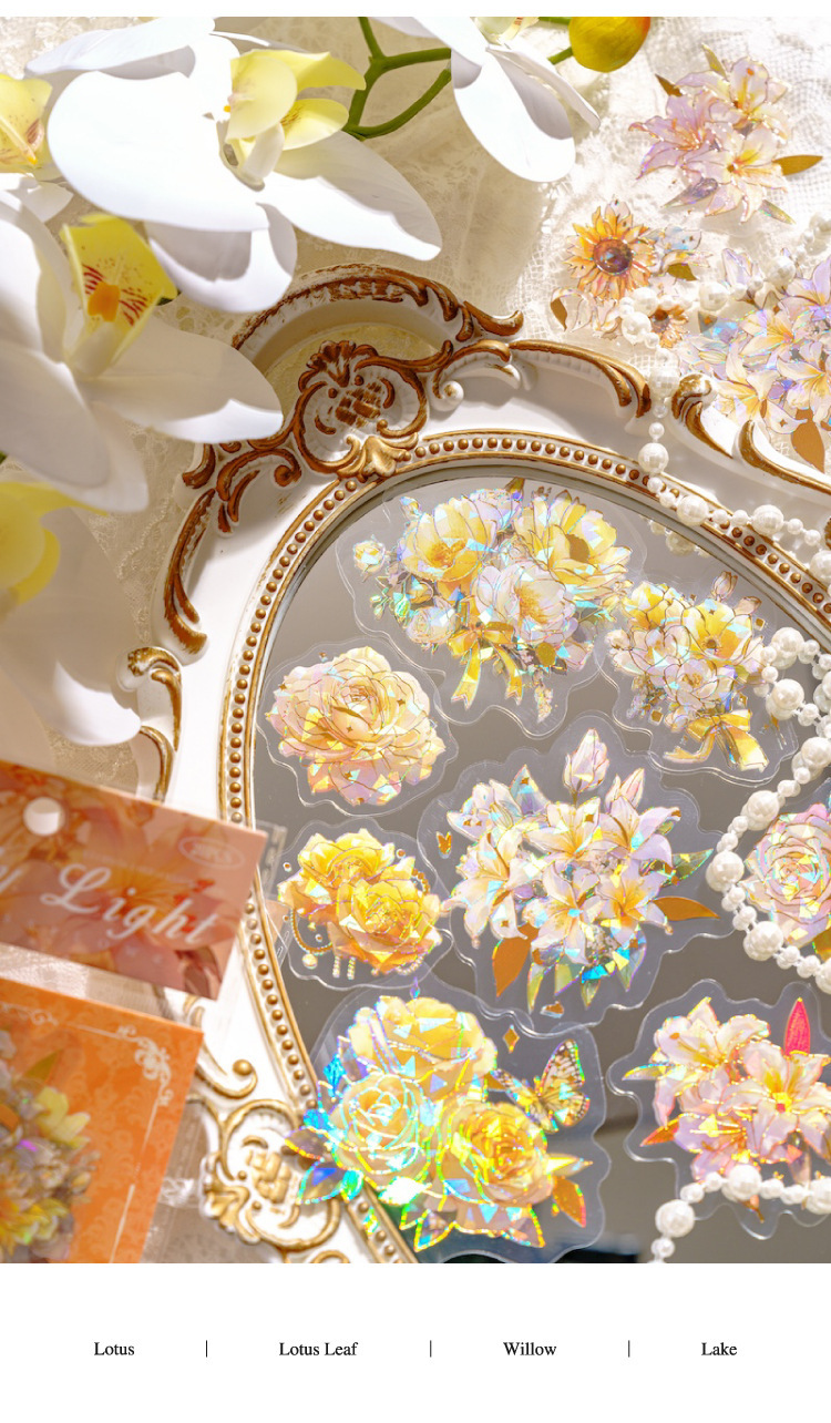 모 PET 스티커 봉투 언바운드 플라워 스펙트럼 시리즈 라이트 레트로 오리지널 드림 플라워 입체 레이저 핸드 어카운트 소재
