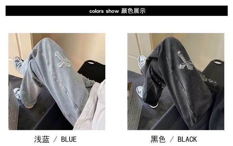 워싱 올드 크로스 청바지 남자의 봄과 가을 미국 스타일 복고풍 유행 브랜드 스트레이트 다리 바지 느슨한 캐주얼 바지스토어 가기