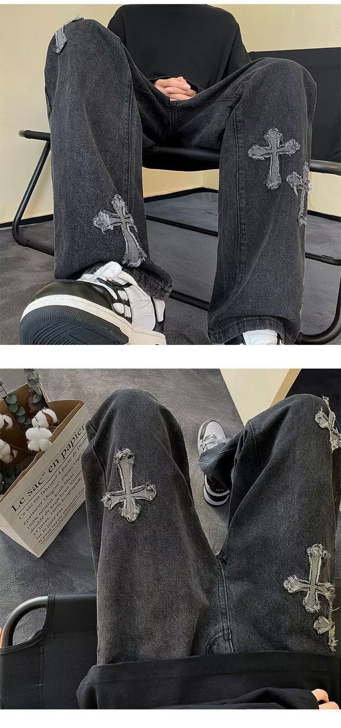워싱 올드 크로스 청바지 남자의 봄과 가을 미국 스타일 복고풍 유행 브랜드 스트레이트 다리 바지 느슨한 캐주얼 바지
