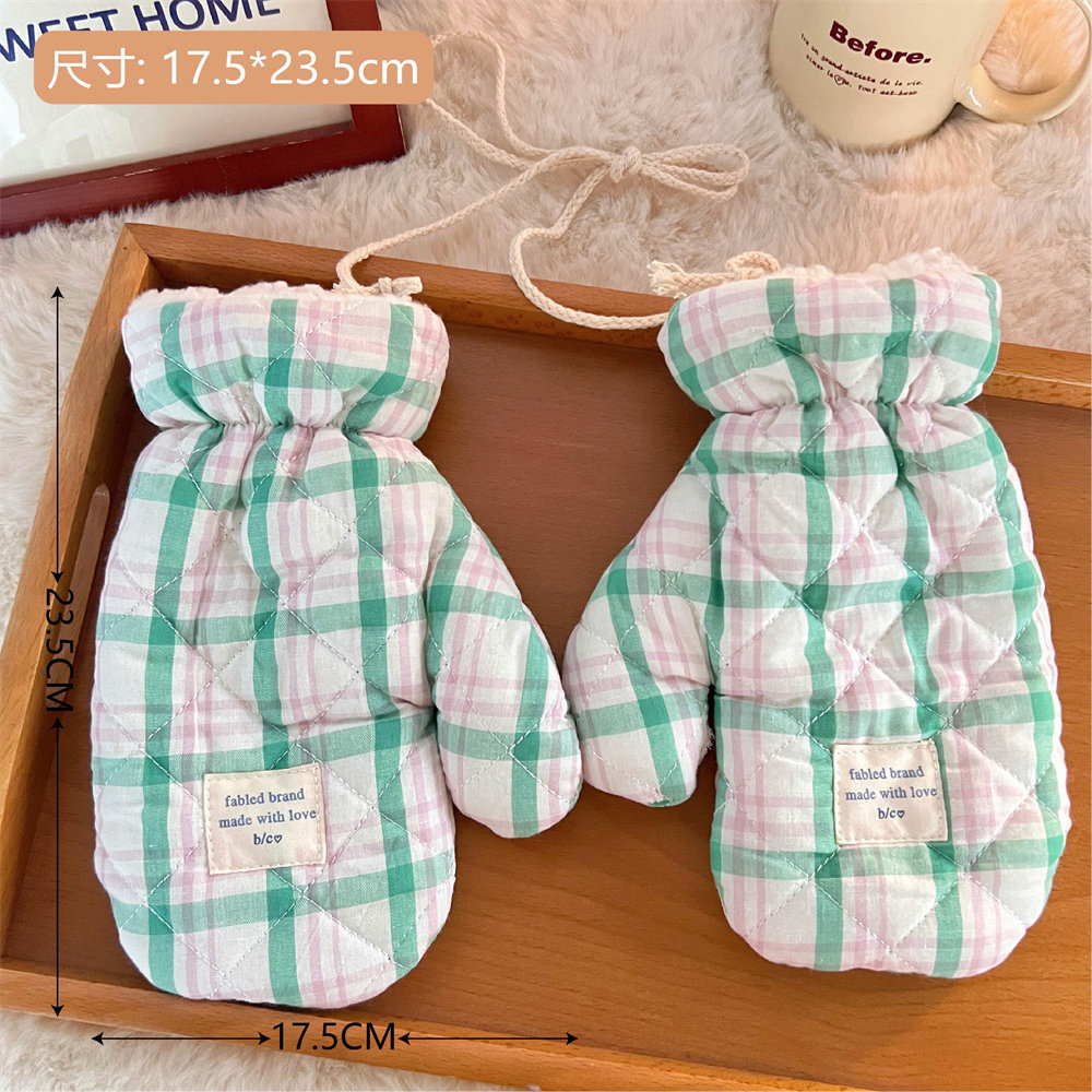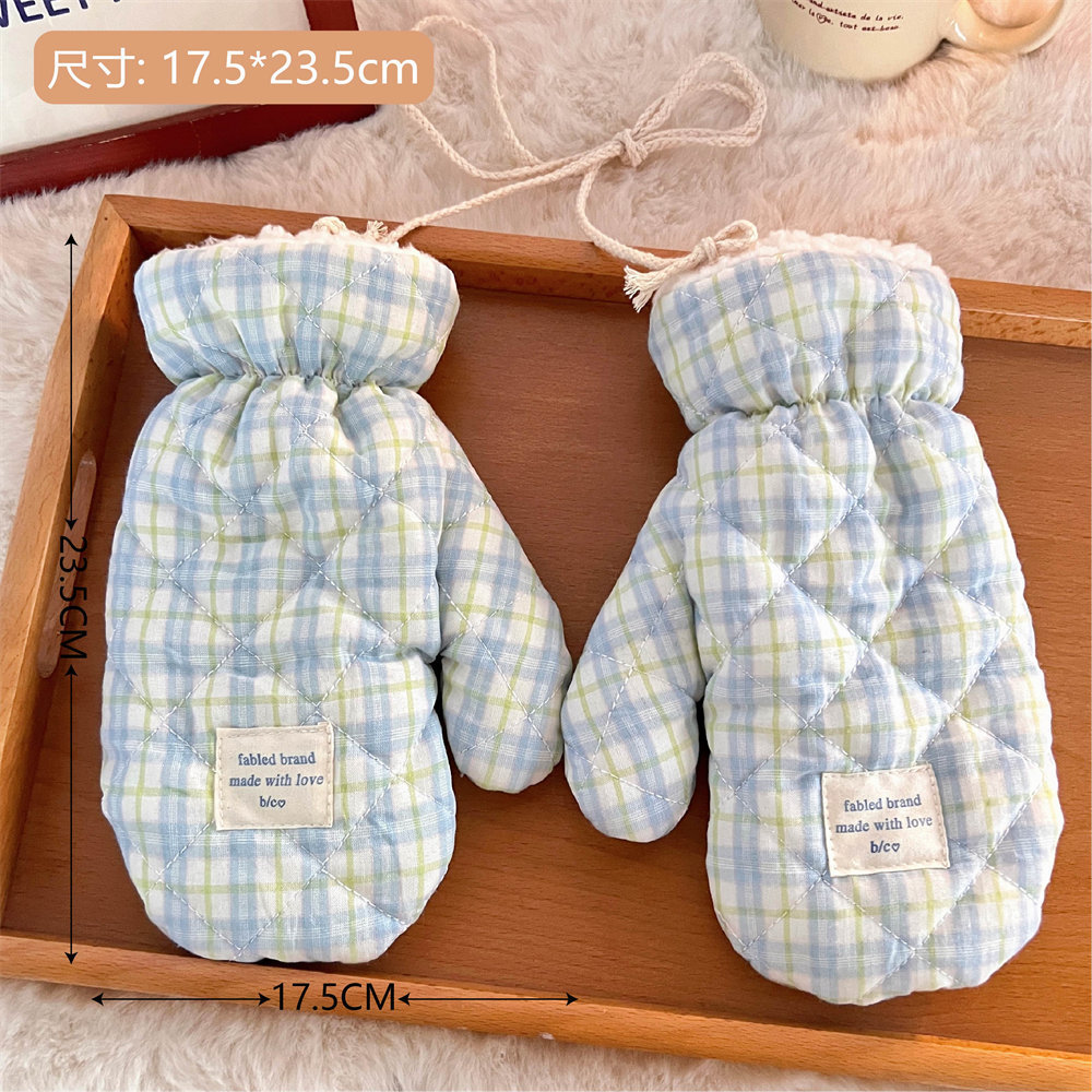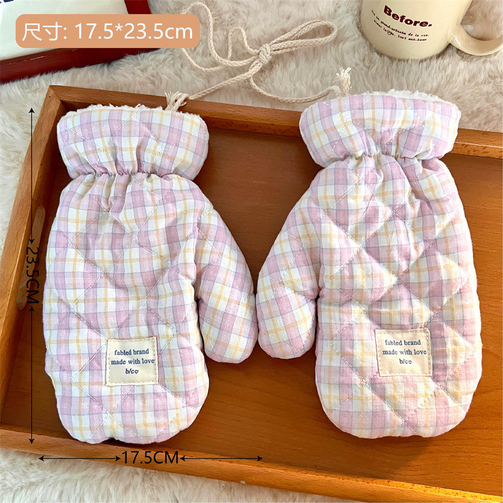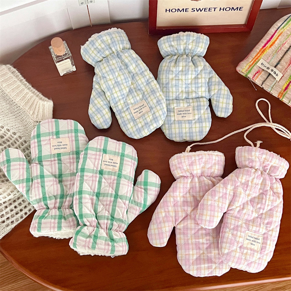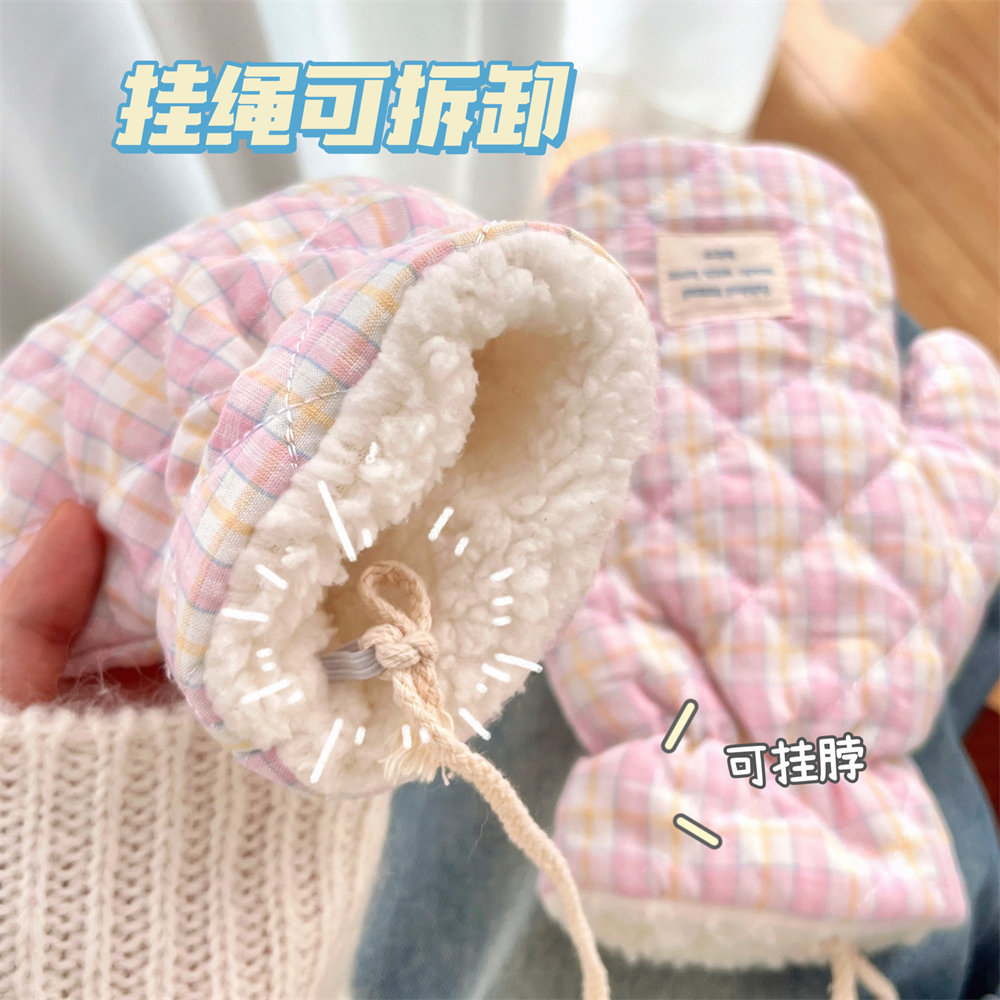가을과 겨울 봉제 두꺼운 격자 무늬 장갑 여자 방풍 방한 장갑 목 걸이 따뜻한 승마 장갑