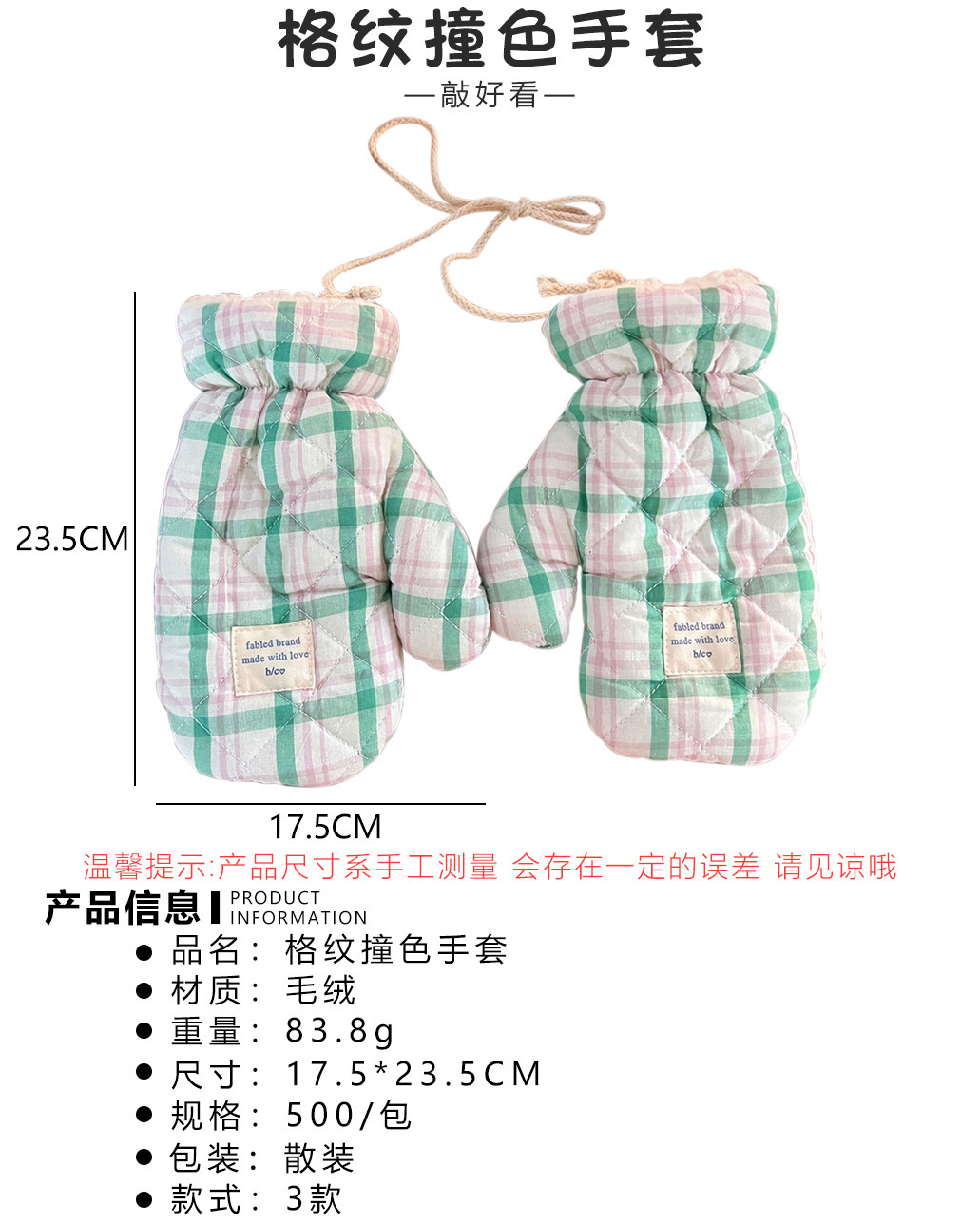 가을과 겨울 봉제 두꺼운 격자 무늬 장갑 여자 방풍 방한 장갑 목 걸이 따뜻한 승마 장갑스토어 가기