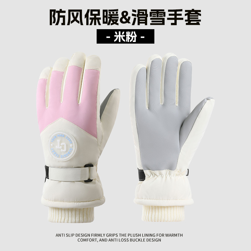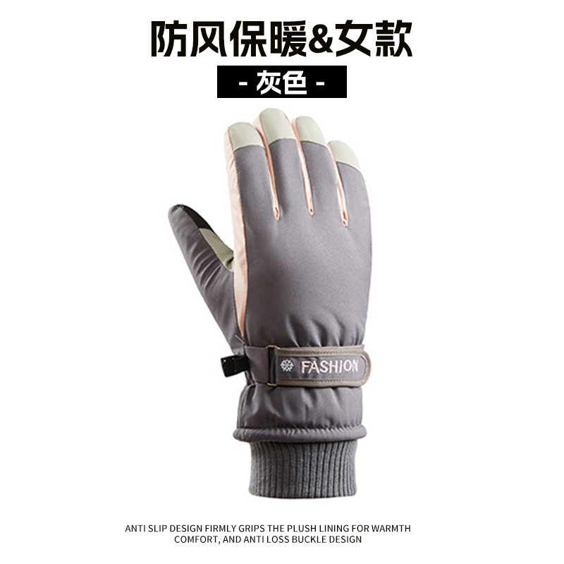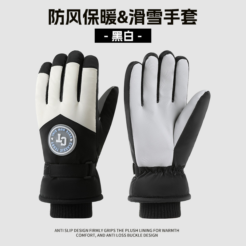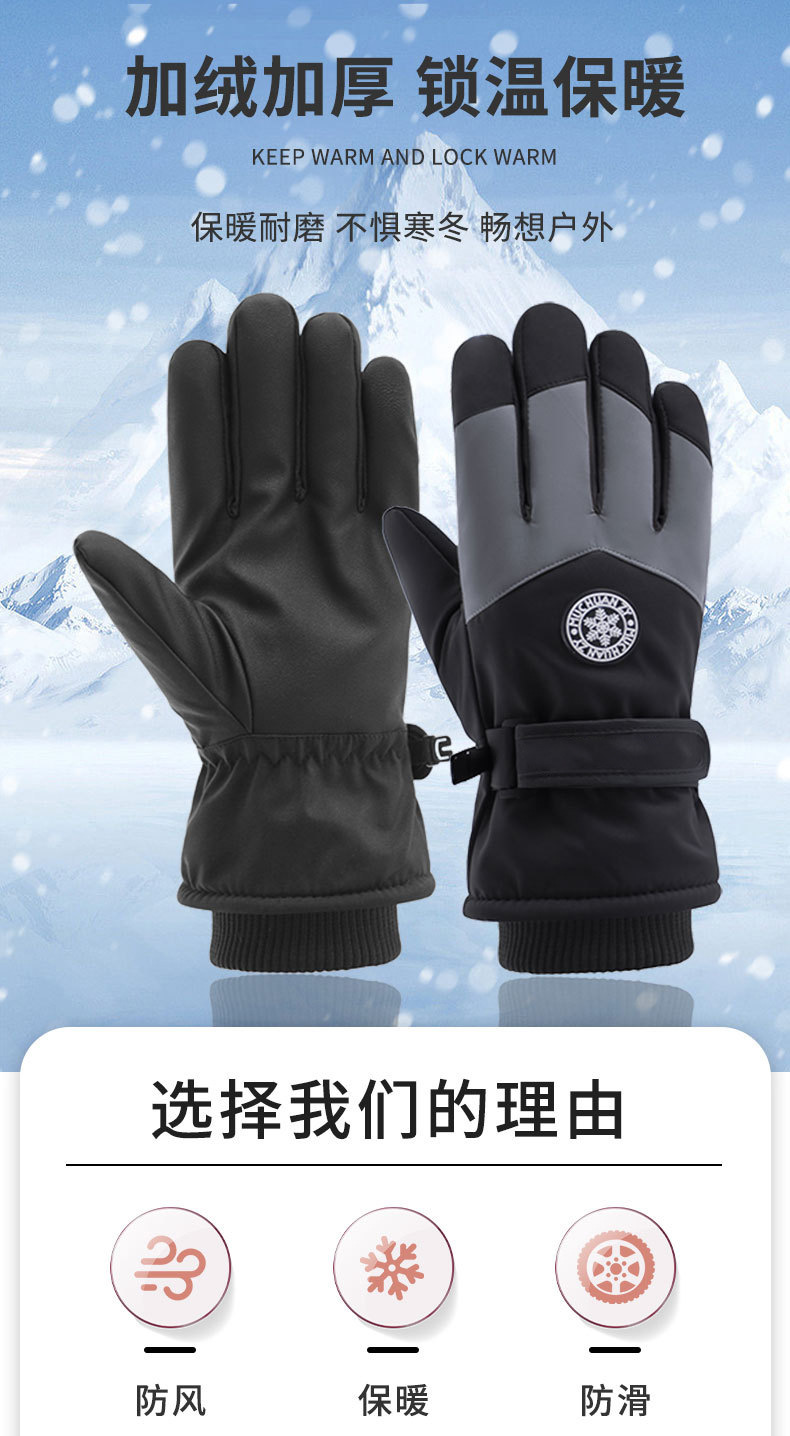 크로스보더 겨울 방풍 보온 플러스 벨벳 안감 두꺼운 방수 장갑 야외 라이딩 전기 자전거 미끄럼 방지 스키 장갑