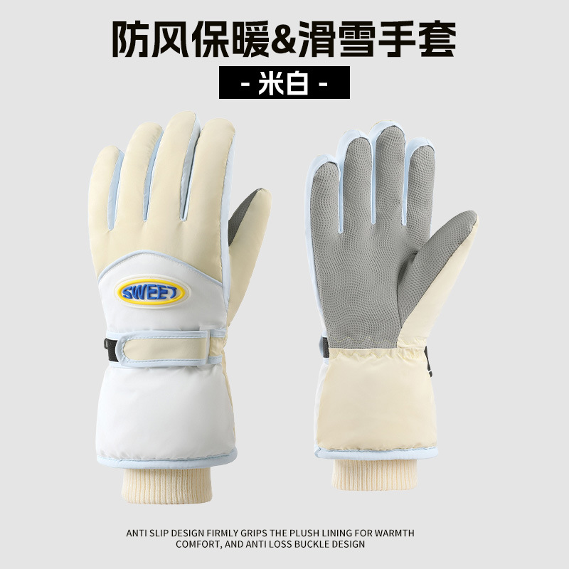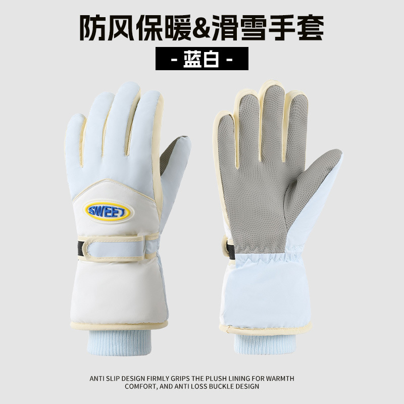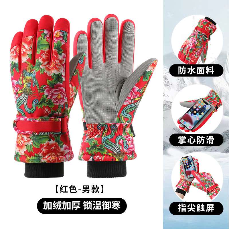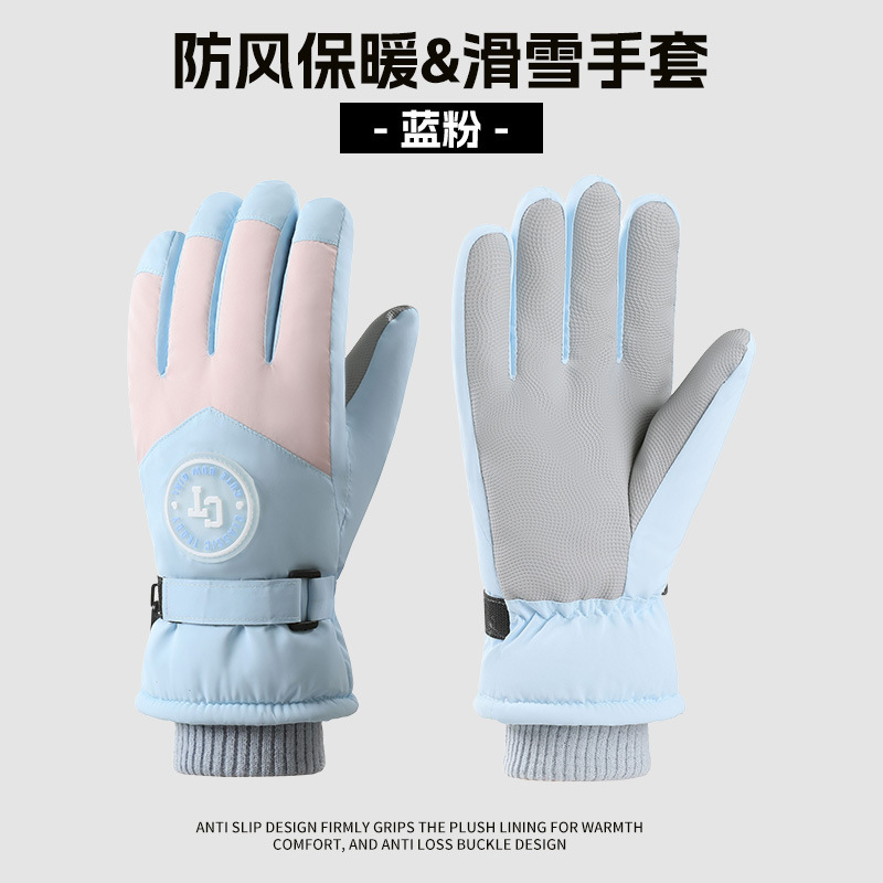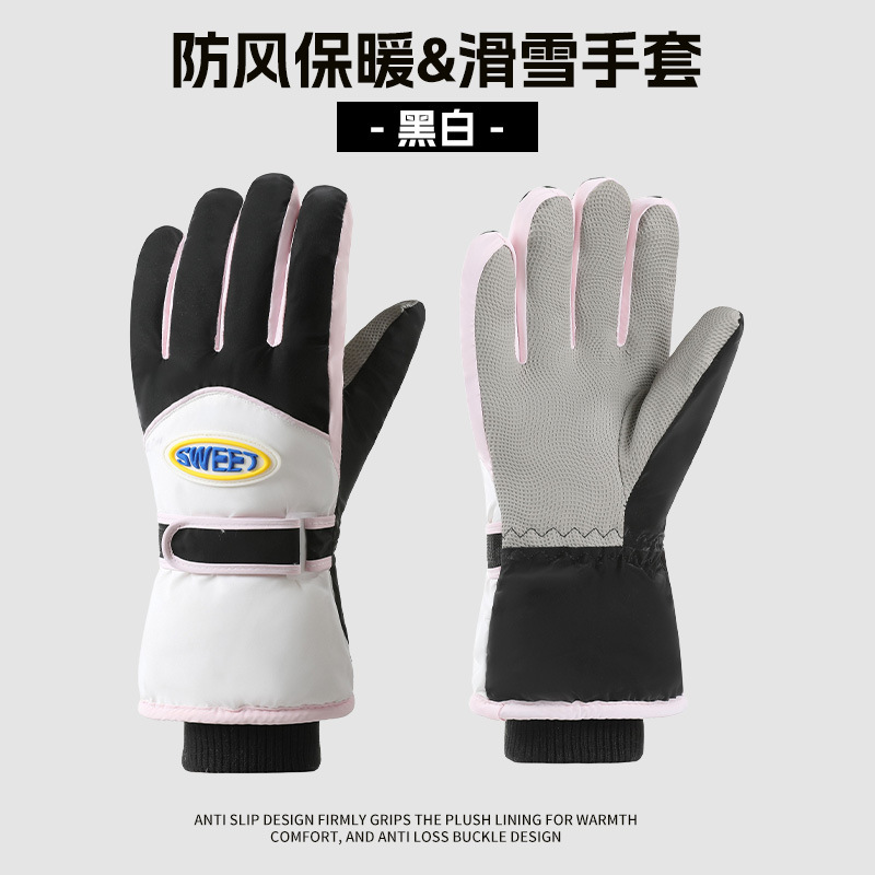 크로스보더 겨울 방풍 보온 플러스 벨벳 안감 두꺼운 방수 장갑 야외 라이딩 전기 자전거 미끄럼 방지 스키 장갑