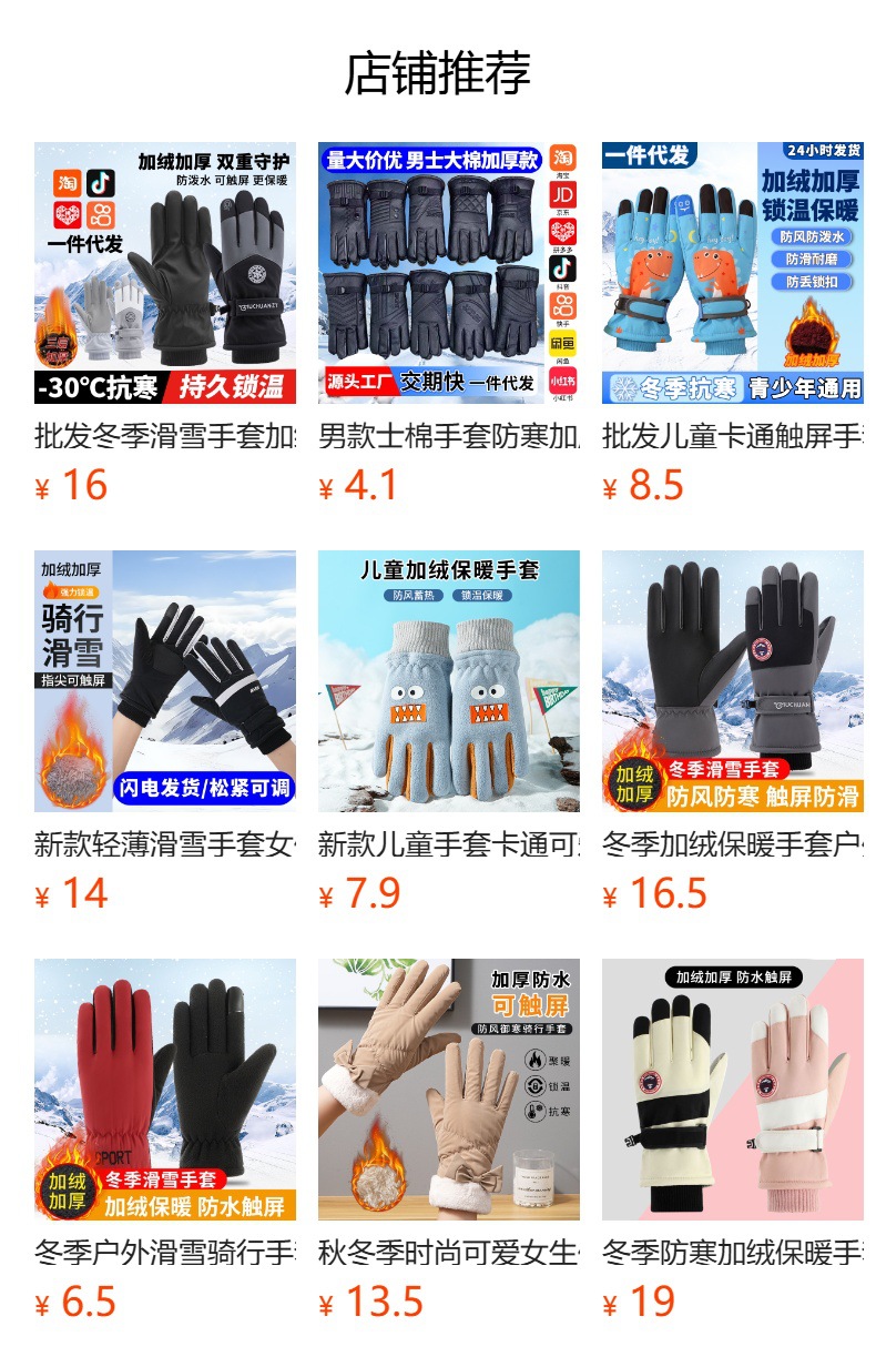 크로스보더 겨울 방풍 보온 플러스 벨벳 안감 두꺼운 방수 장갑 야외 라이딩 전기 자전거 미끄럼 방지 스키 장갑스토어 가기